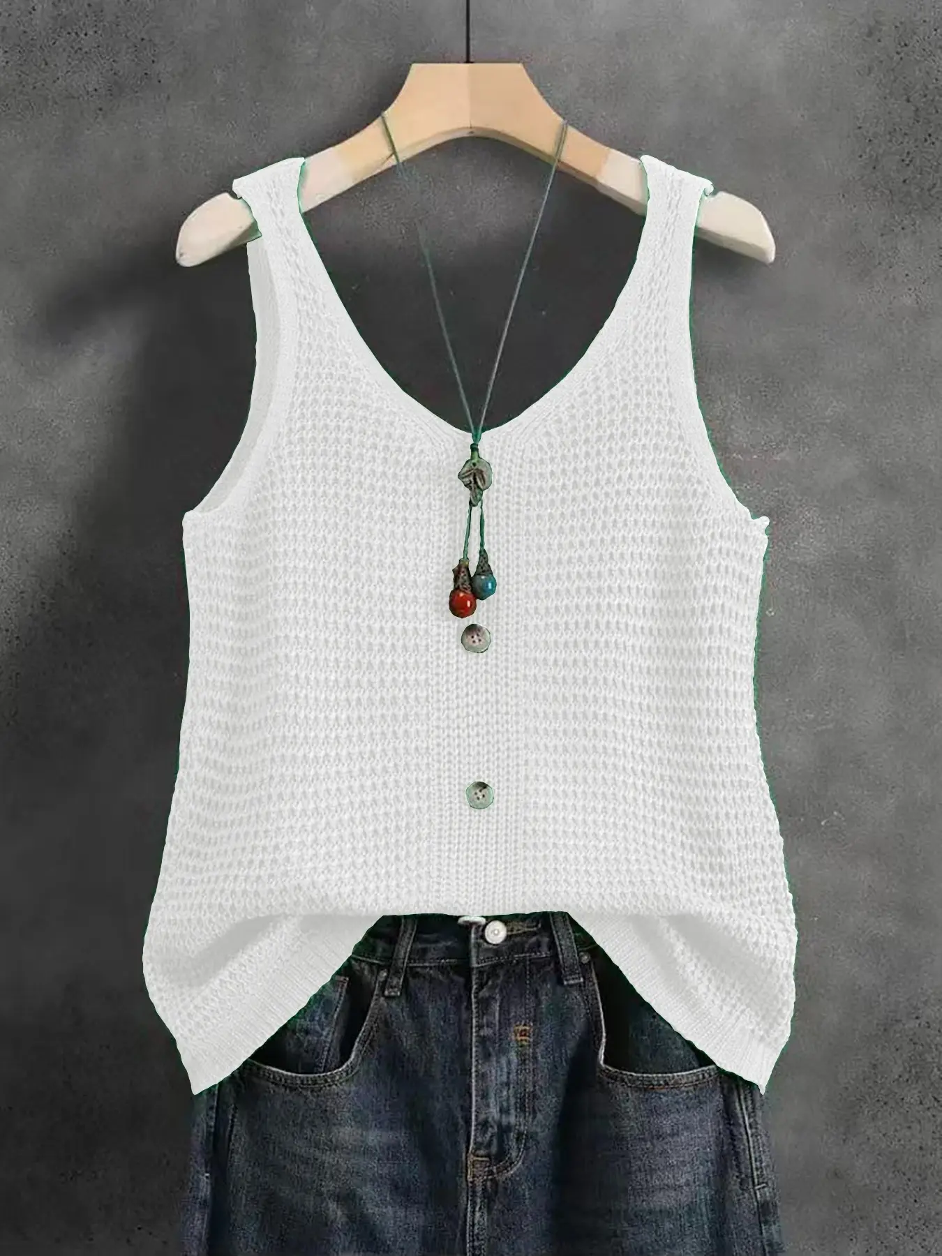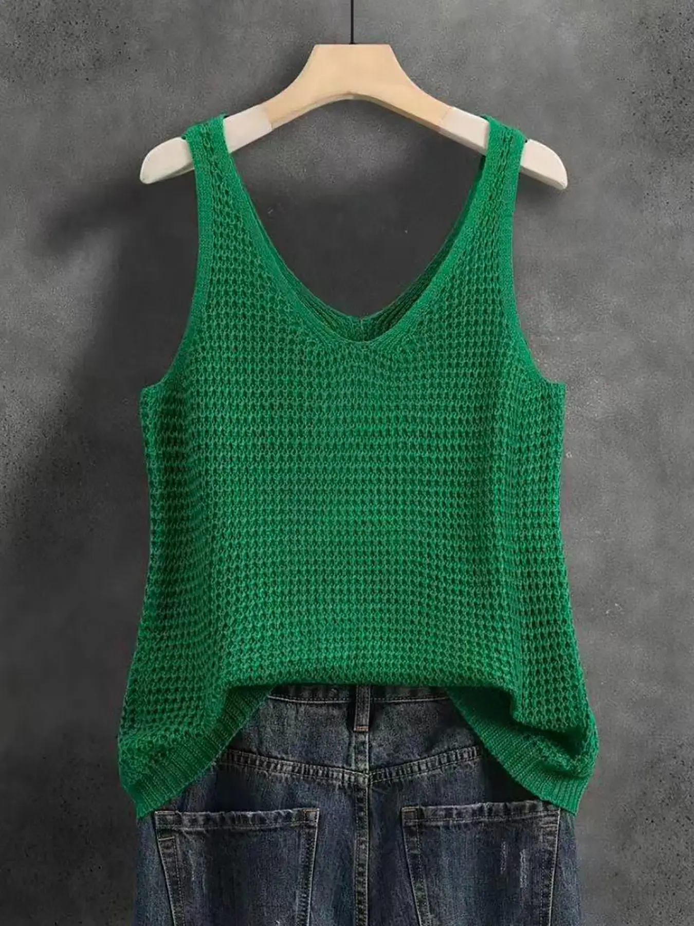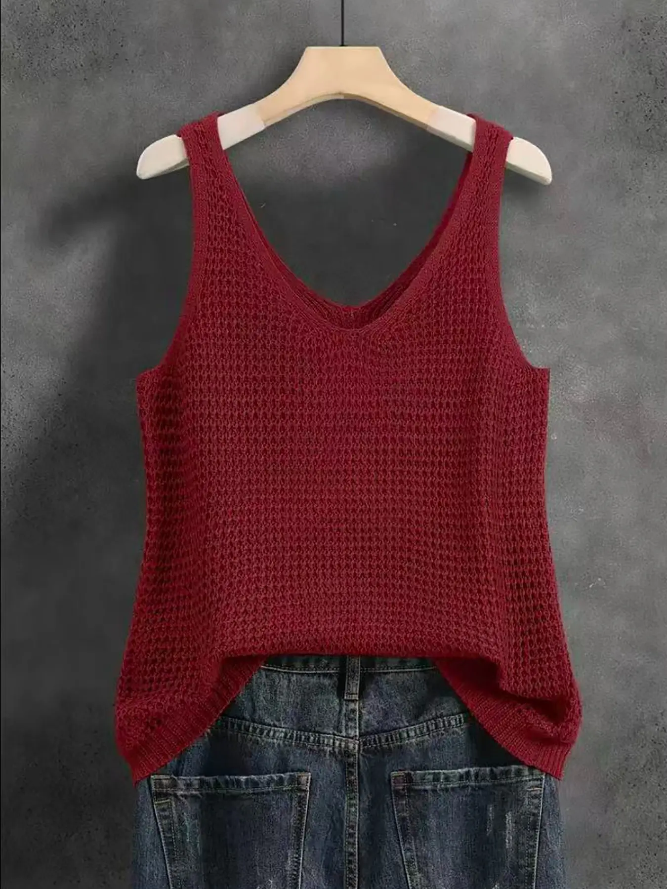 Women's Sleeveless V-Neck Knit Top, Summer Outerwear, Slimming Comfortable Loose Fit, Elegant Casual Design, Breathable Mesh Vest