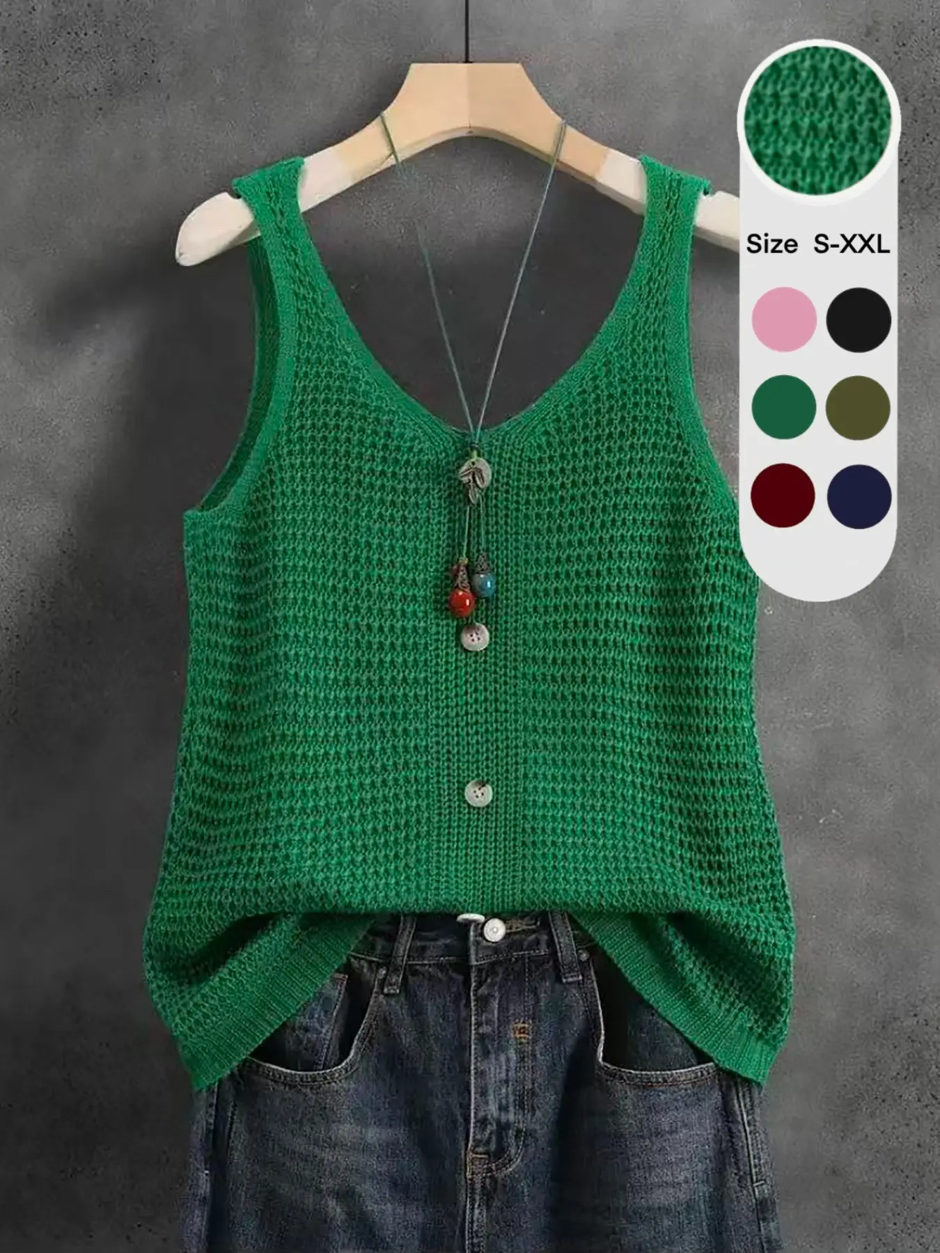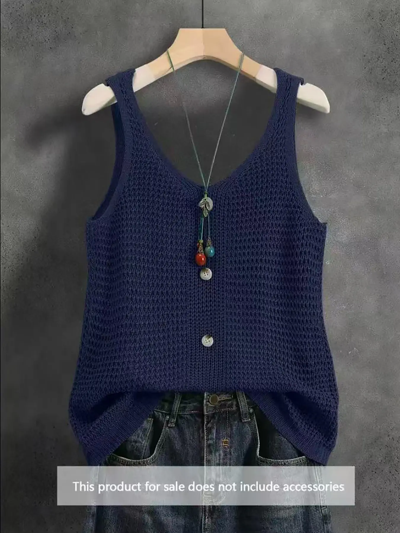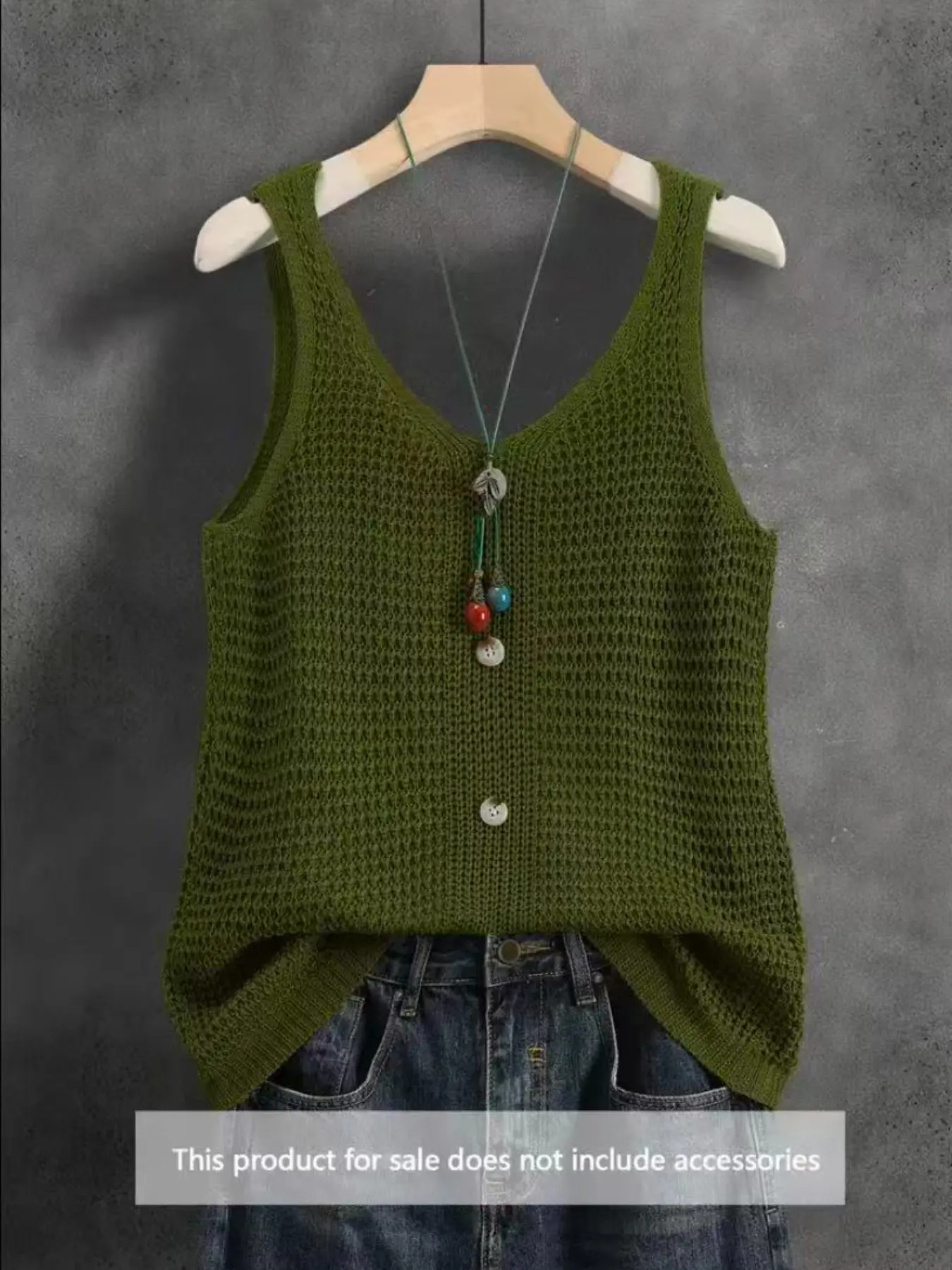 5. Women's Sleeveless V-Neck Knit Top, Summer Outerwear, Slimming Comfortable Loose Fit, Elegant Casual Design, Breathable Mesh Vest