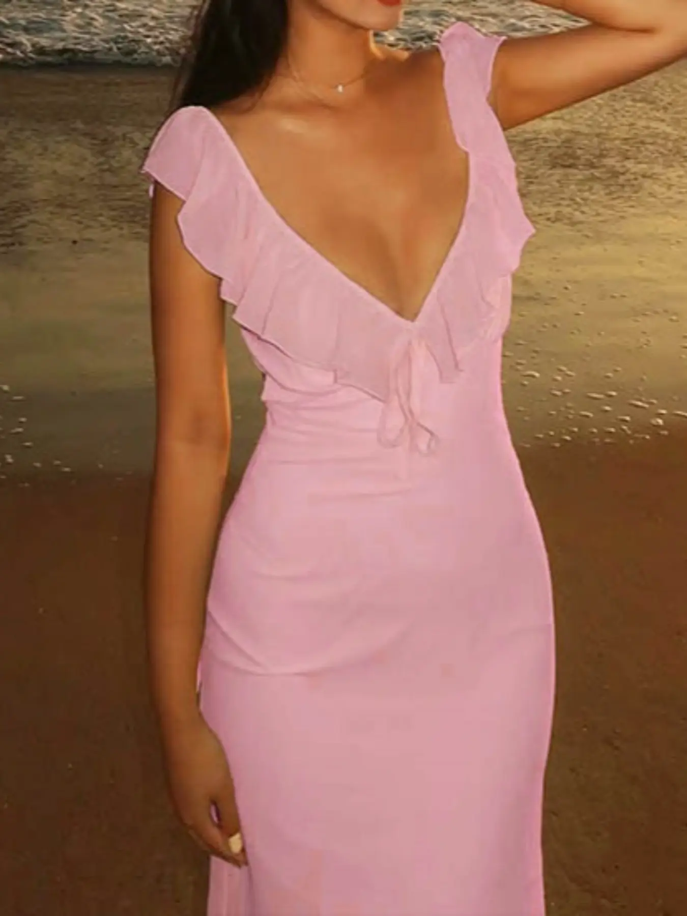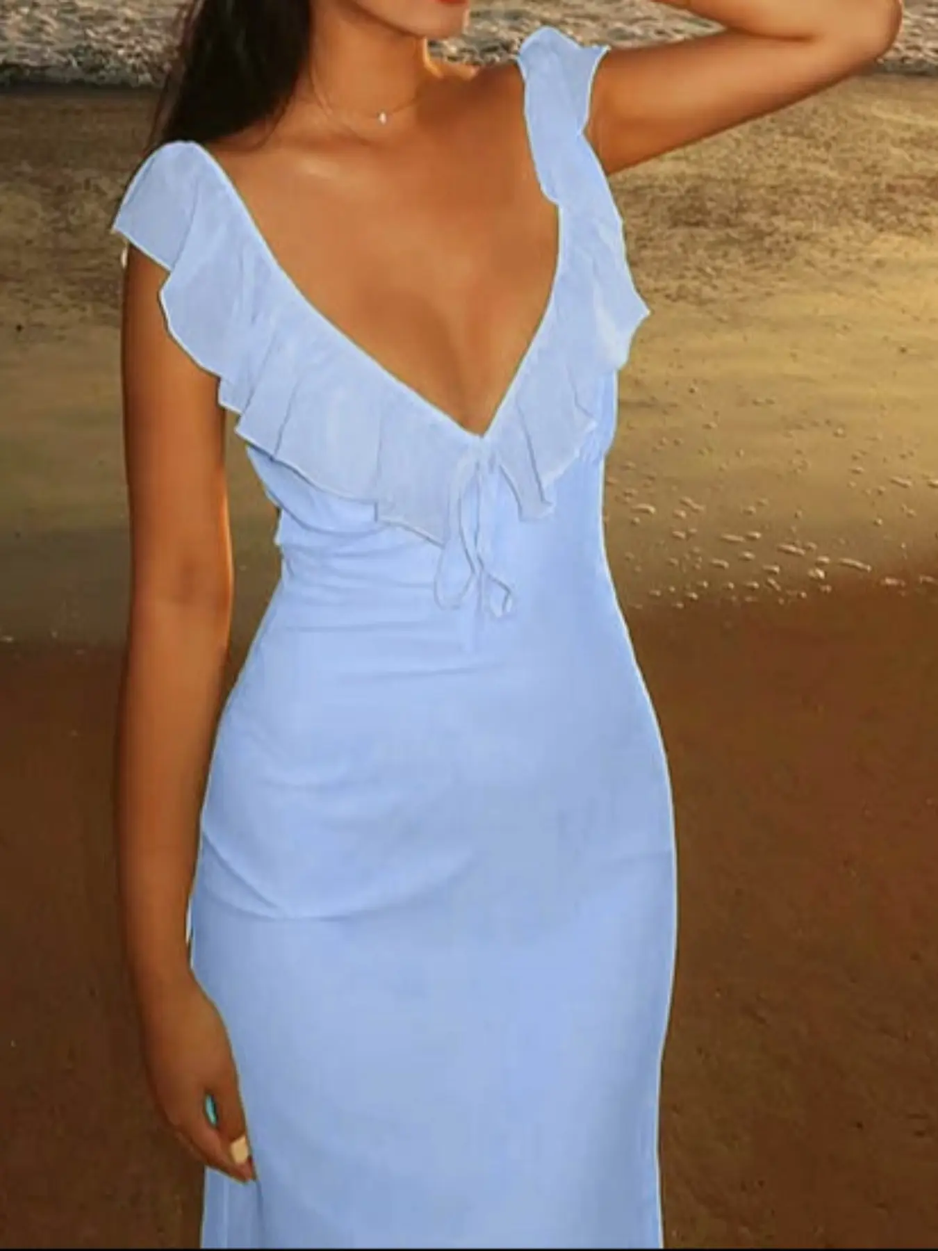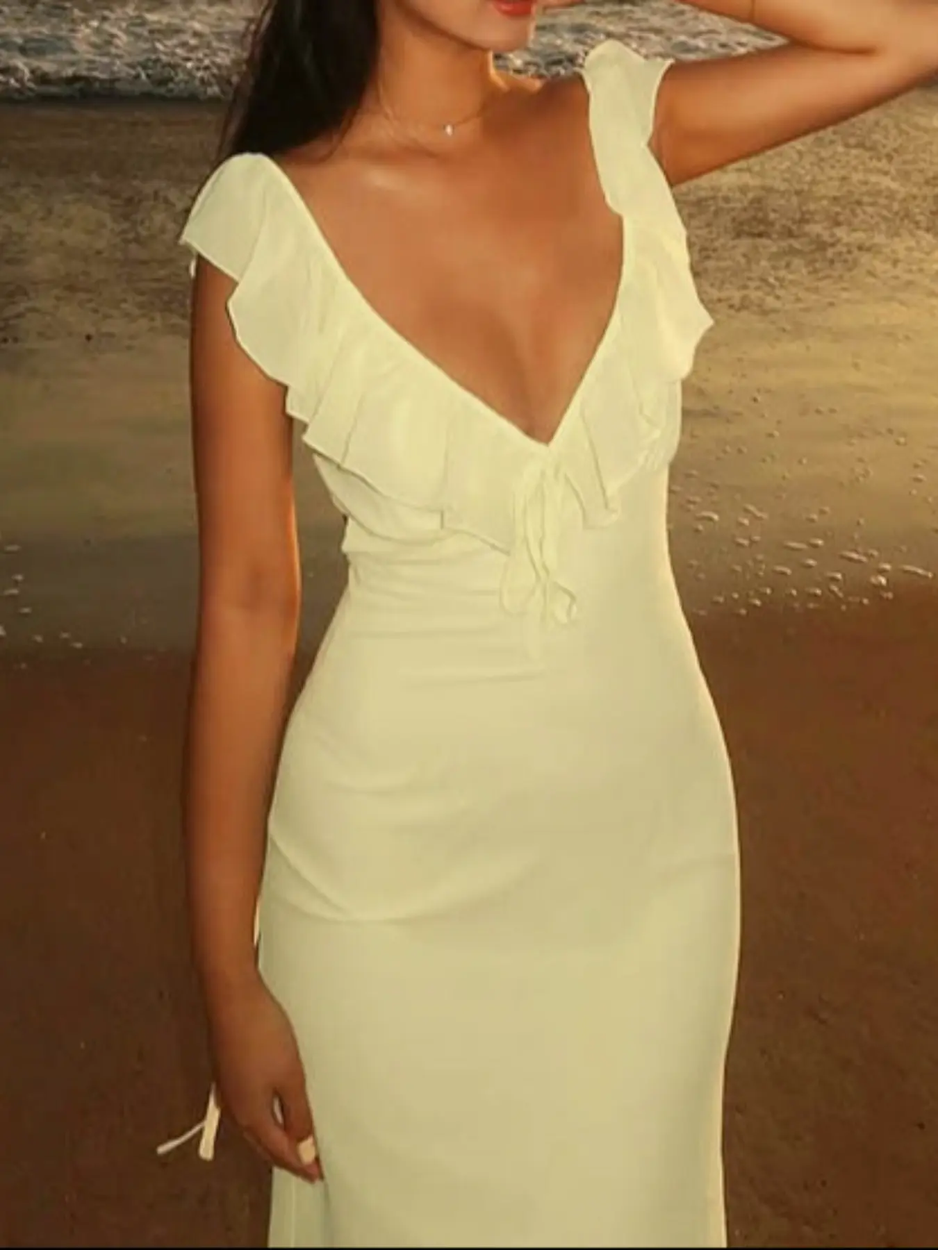 【Ruffled Hem】: The delicate ruffles provide a feminine touch, distinguishing this piece from standard summer dresses while maintaining a soft silhouette.
