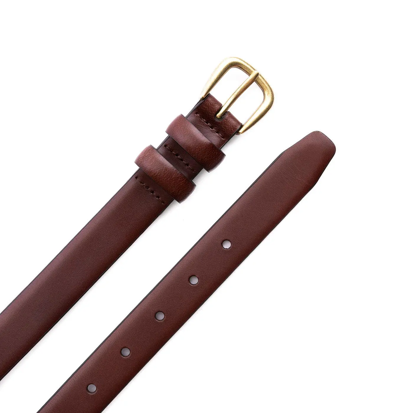 Love this double-stitched (umber in my photos) colored belt - perfect thickness and width. I’m a ~26” waist, wearing it with BKE high-rise jeans. Styled here with a cropped tank and a lightweight sweater in a messy tuck. The belt is a size sm. I’m on the 2nd notch and don’t mind the extra tail with this thicker weight denim. Wish they offered an XS or one more notch on this sm belt so it looks a little more balanced.