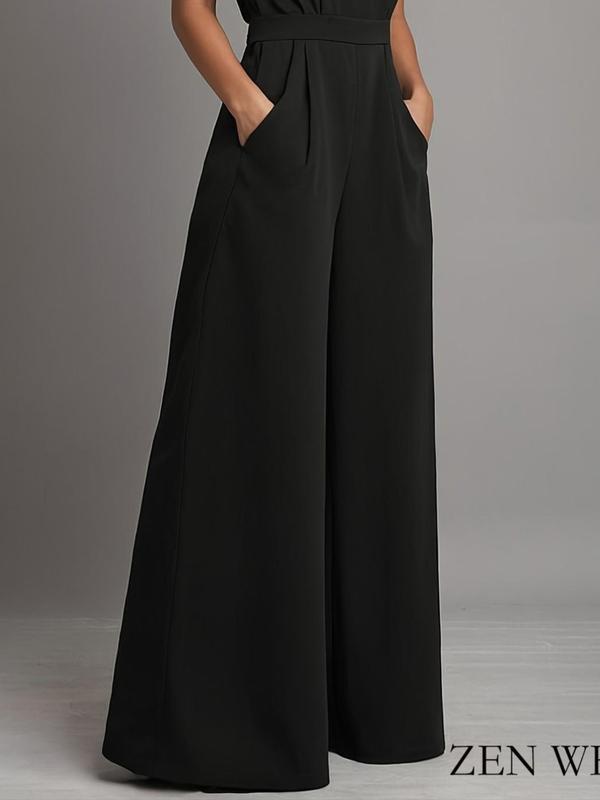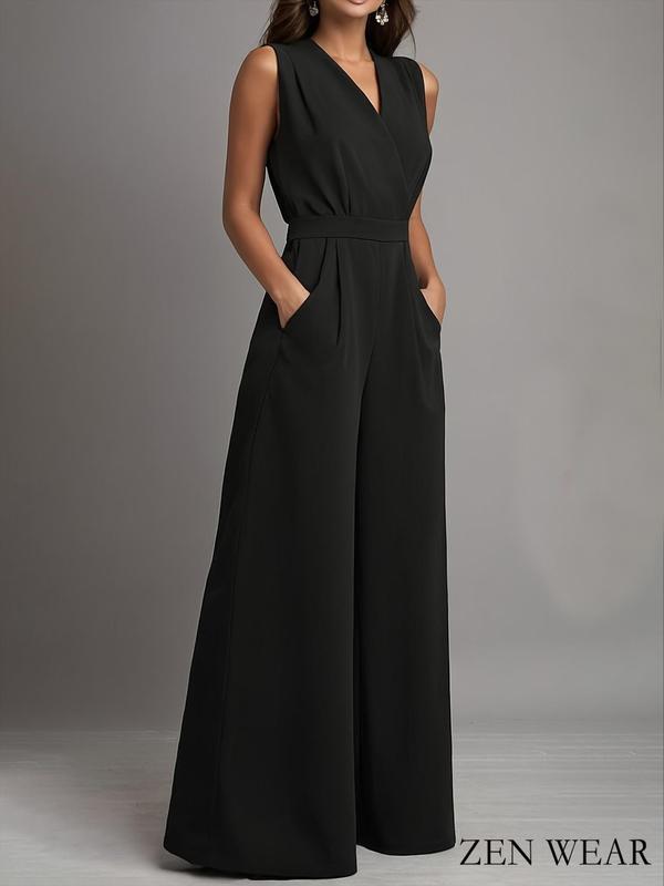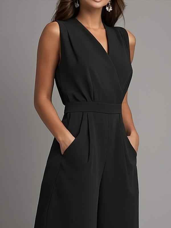 Spring Summer New Women's Casual Solid Color Small V-Neck Jumpsuit Vest Zllz, Stylish One-Piece for Daily Wear