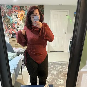 Fits great and is reallyyy slimming I highly recommend for a cute going out top when itās colder