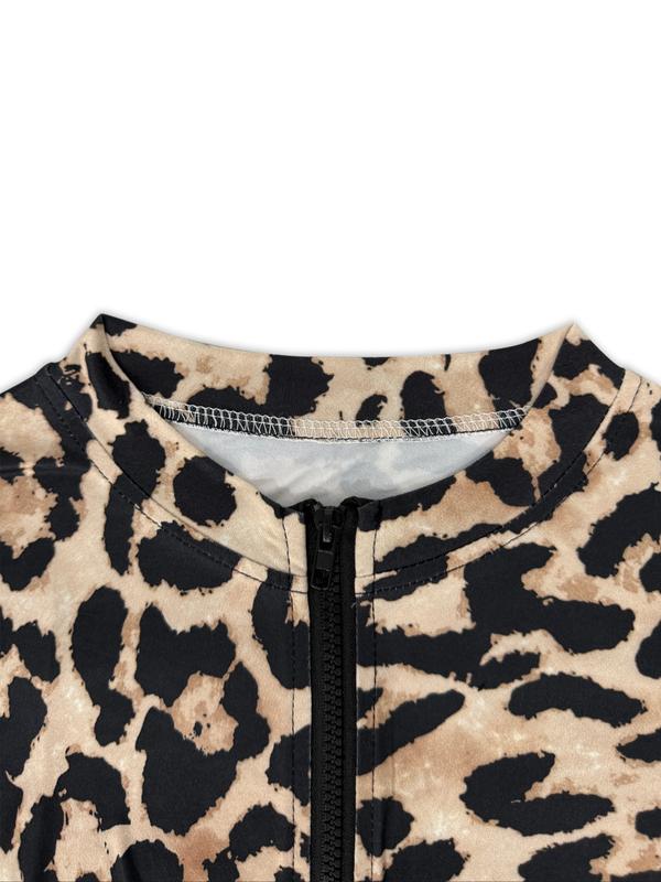 Women's slim fit long sleeve zipper leopard print casual sexy fashion jacket, suitable for daily wear, outdoor activities, work, club parties and many other occasions