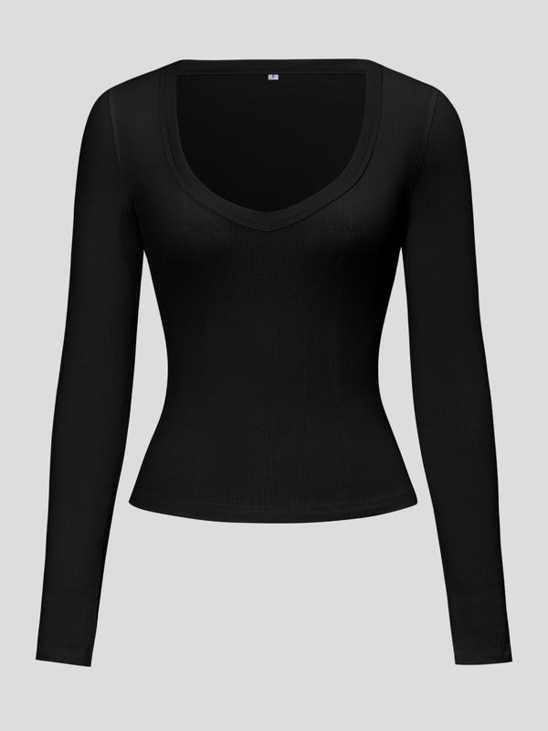 Women's Solid Color Slim Fit Long Sleeve Top, Thin Material, Fall Fashion, Comfortable & Stylish Everyday Wear, XS-Xl Sizes Available #longsleevedress #fulllengthtops #longsleevedshirt #knittedlongsleeve #vnecksweatshirt #เสื้อผ้าผู้หญิง #fallshirt #shirtsforwomen #womenscrewneck #pololongsleeve