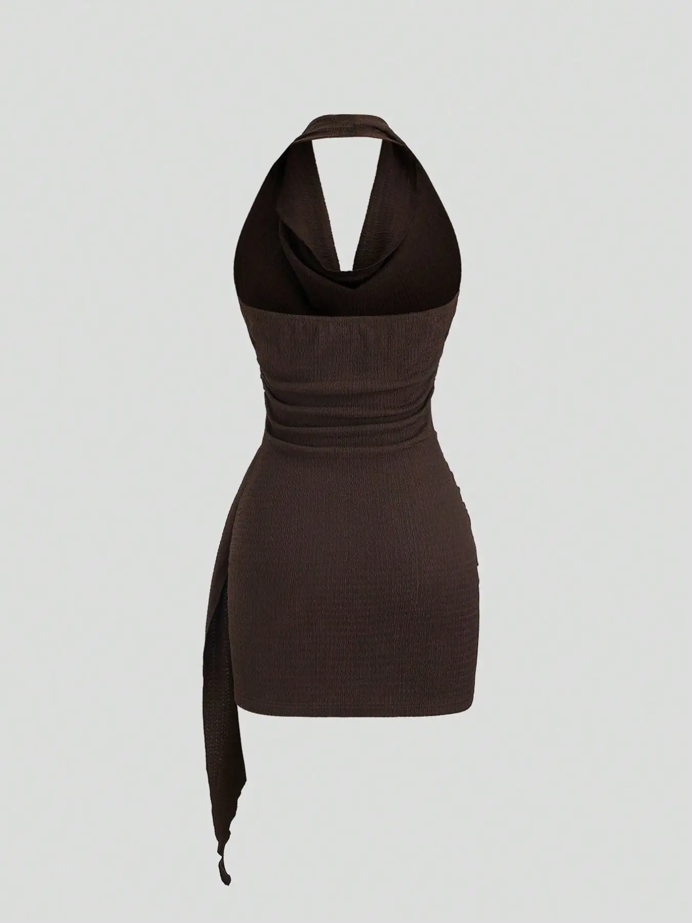 Women's Fashion Solid Color Halter Dress, Casual Office Wear, Elegant Backless Design, Perfect for Daily Use, Stylish and Comfortable