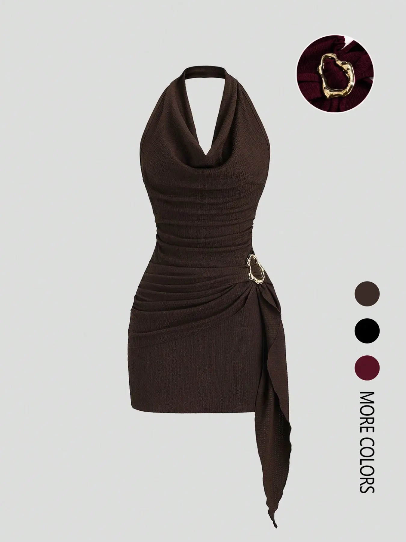 5. Women's Fashion Solid Color Halter Dress, Casual Office Wear, Elegant Backless Design, Perfect for Daily Use, Stylish and Comfortable