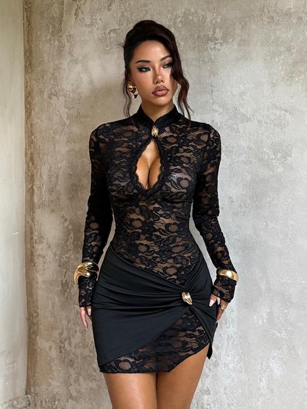 Okay so this dress is cuteeee 🔥 but heads up it’s lace, thin, and definitely see-through. I wore a black bra underneath. It’s also super short, so she’s a scandalous moment 😂 Wear with confidence & caution. Still a vibe though.