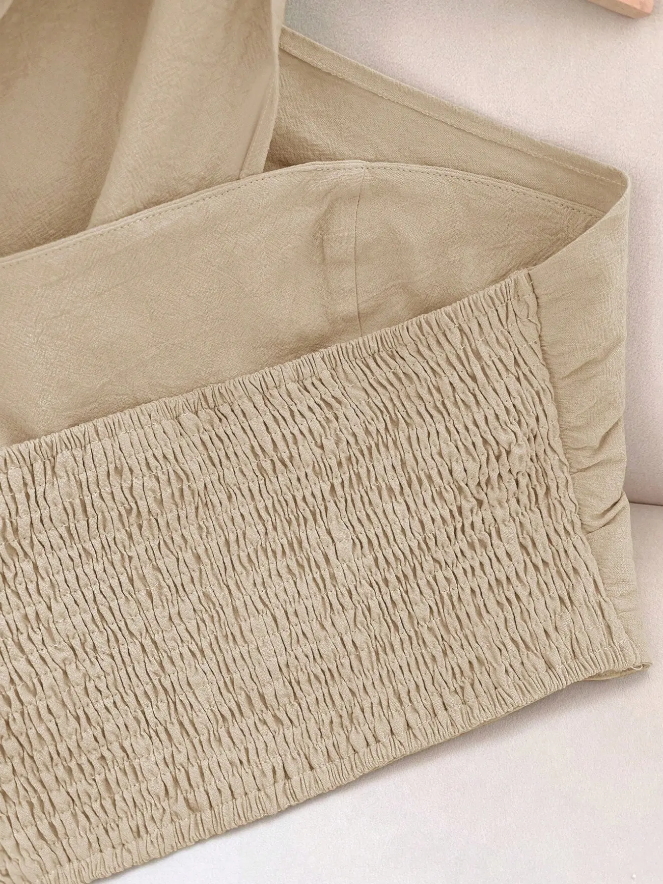 【Shirred Detailing】: The shirred accents add a touch of texture, providing visual interest while maintaining a minimalist aesthetic.
