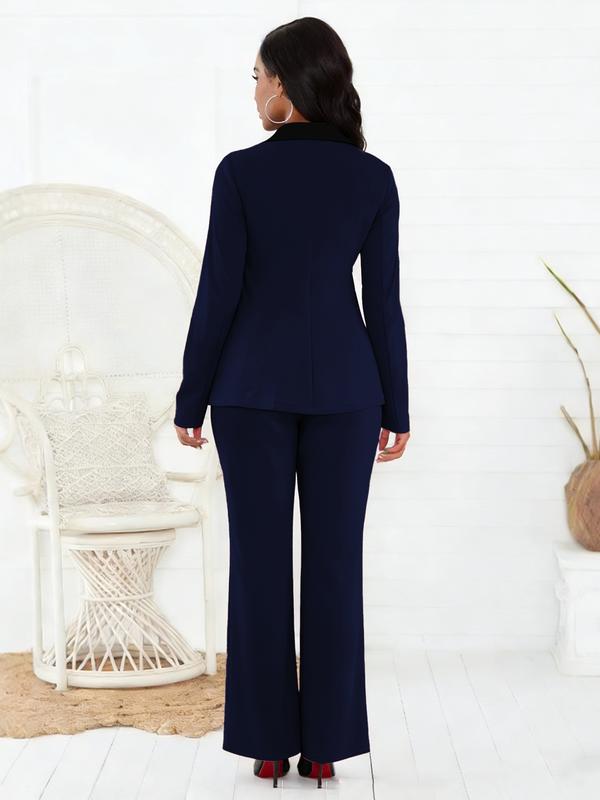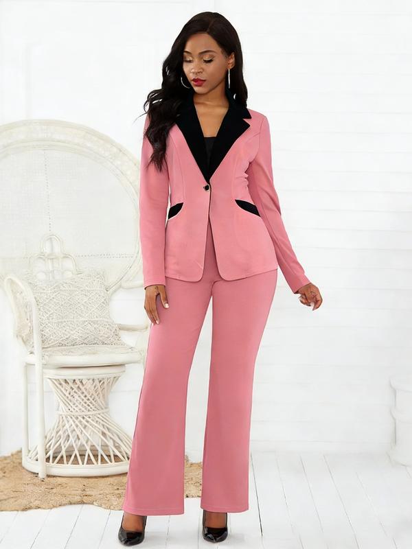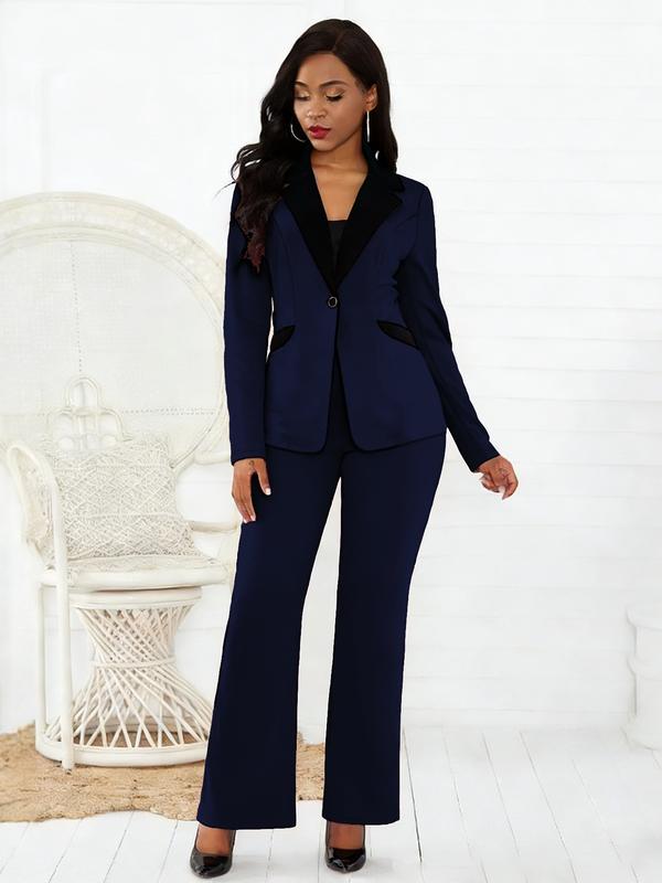 5. Business Style Spring Summer Trendy Women's Two-Piece Set, Colorblock Lapel Button Long Pants, Commuter Professional