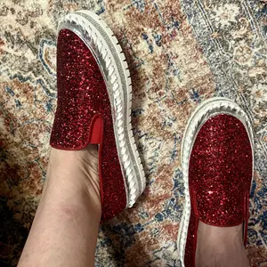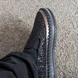 These shoes so cute and fun and sparkly! I got many compliments when I went out in them for the first time. I wore a cute outfit and the tennis shoes just made my outfit FUN! 🤩 They are exactly what’s described and comfy too!