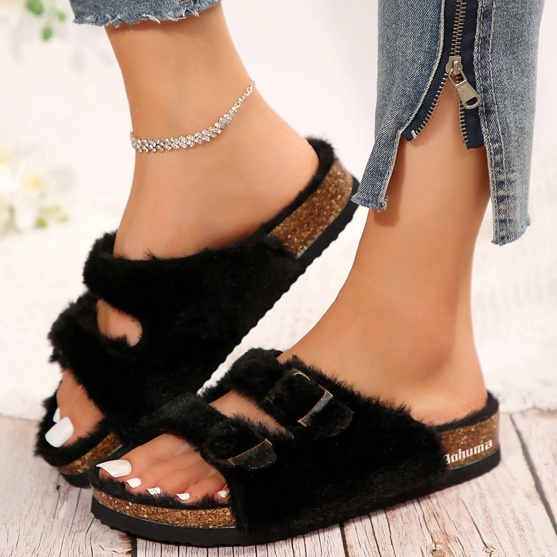 Love these fuzzy slippers they feel good on easy to walk in whether indoors or outside pretty on my feet price was right side was true fit