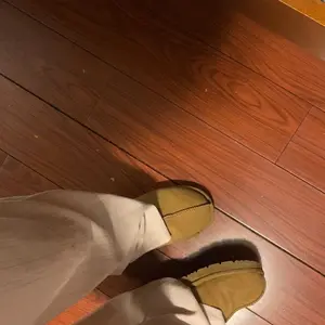 These are closer to the actual description they do have the suede top but the bottoms are not rubber they are the foam i would get a size up they run small