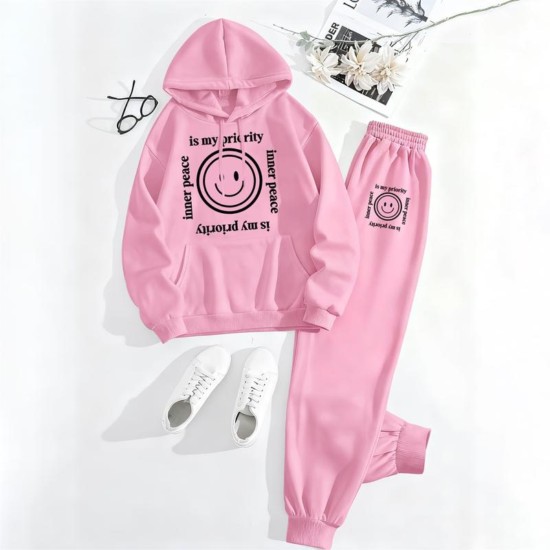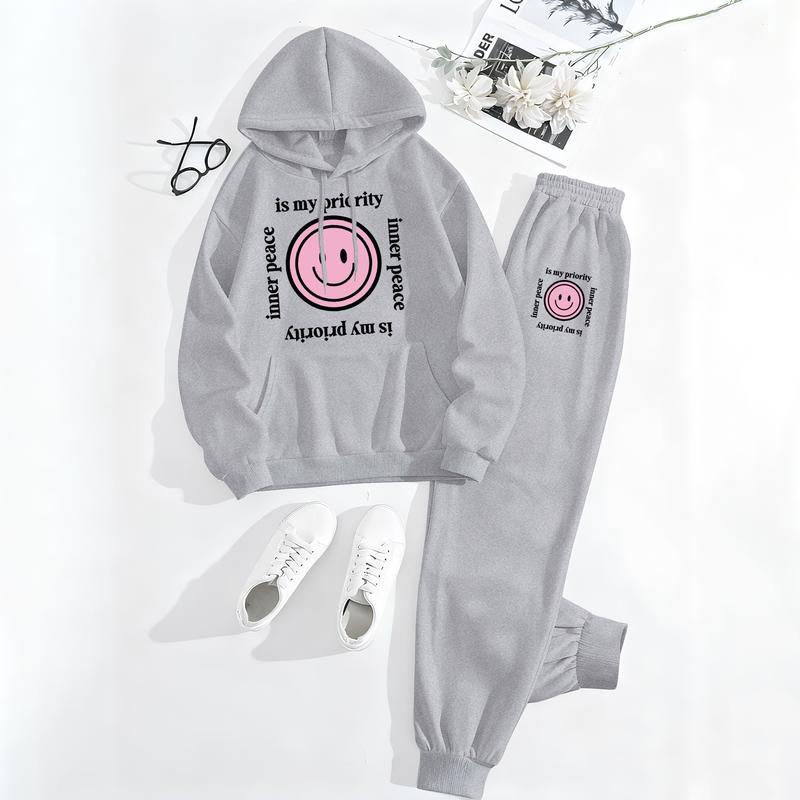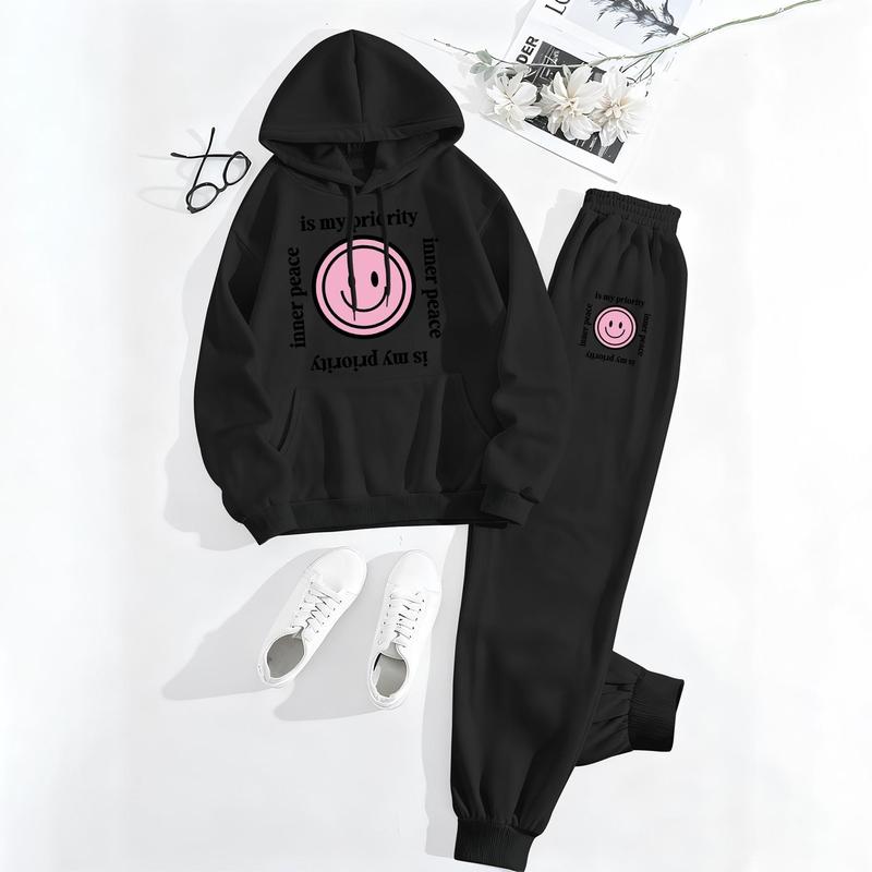 Printed Hoodie & Drawstring Sweatpants Set