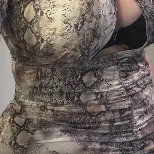 Love the snake print . It’s a little see trough , will need to buy some nude shorts . First pic where my hand is located it’s a little big but nothing a little sowing myself can fix . Ready to celebrate in this dress on my husbands b day .