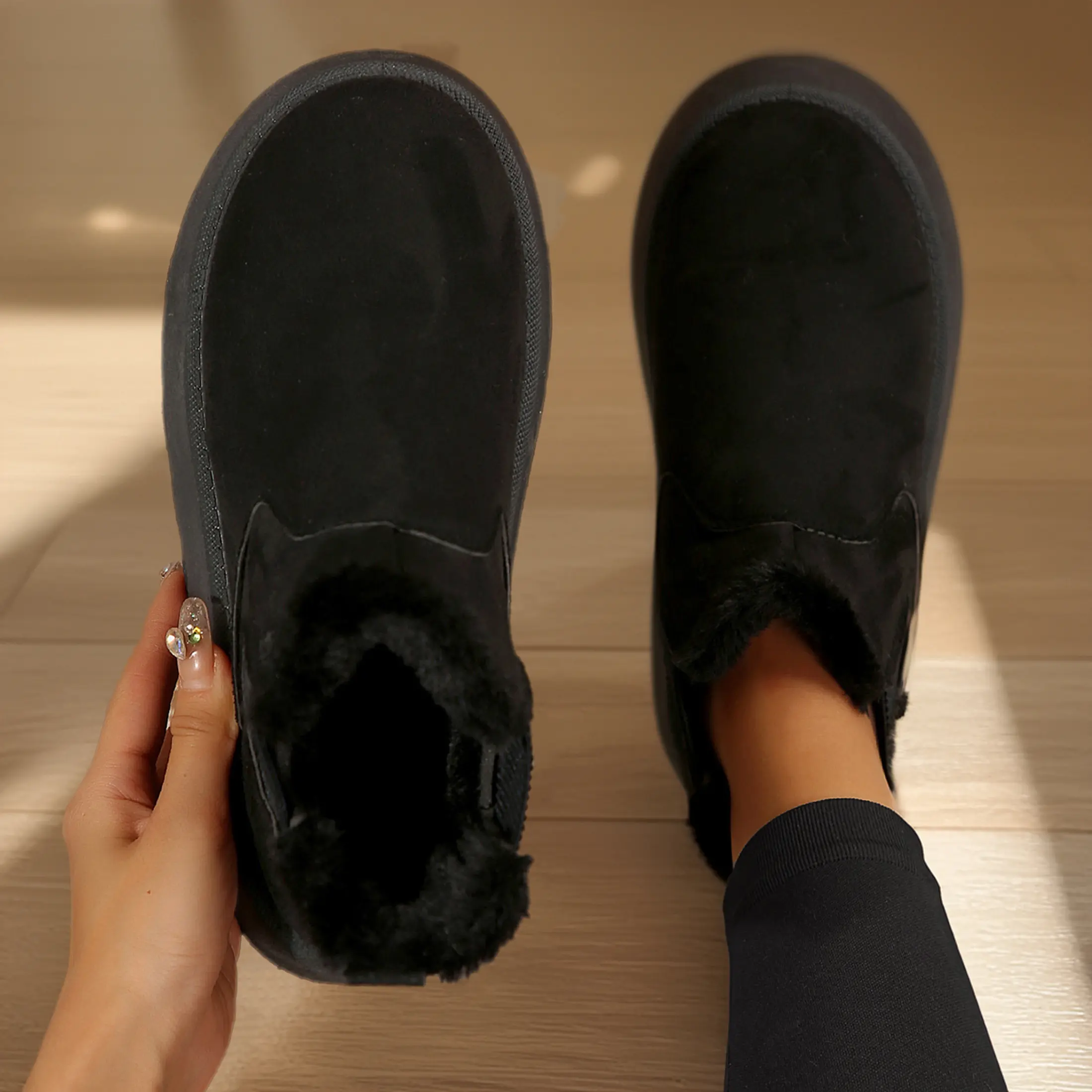 Upper Material: suede fabrics, lined snow boots for women in winter, fluffy warm boots, easy match your pants, coat, jeans, dresses.