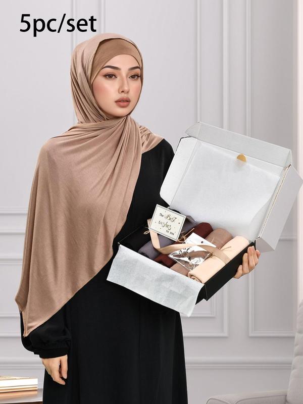 5. Women's Fashion Plain Color Hijab Gift Box Set, Elegant Comfortable Casual Jersey Hijabs, Muslim Prayer Scarves for Various Occasions