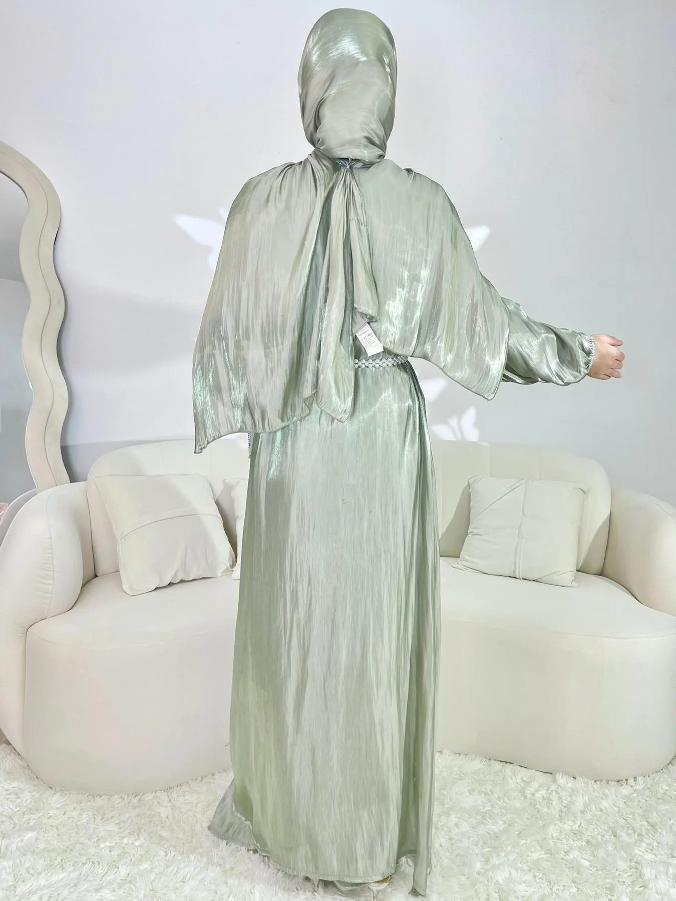 The Abaya looks so luxurious when ironed properly and worn properly. I love how the pearl detailing is done. I would not recommend wearing a belt if you’re little bit on chubbier side but overall it looks absolutely stunning. I also posted video about it on my page, go check it out!