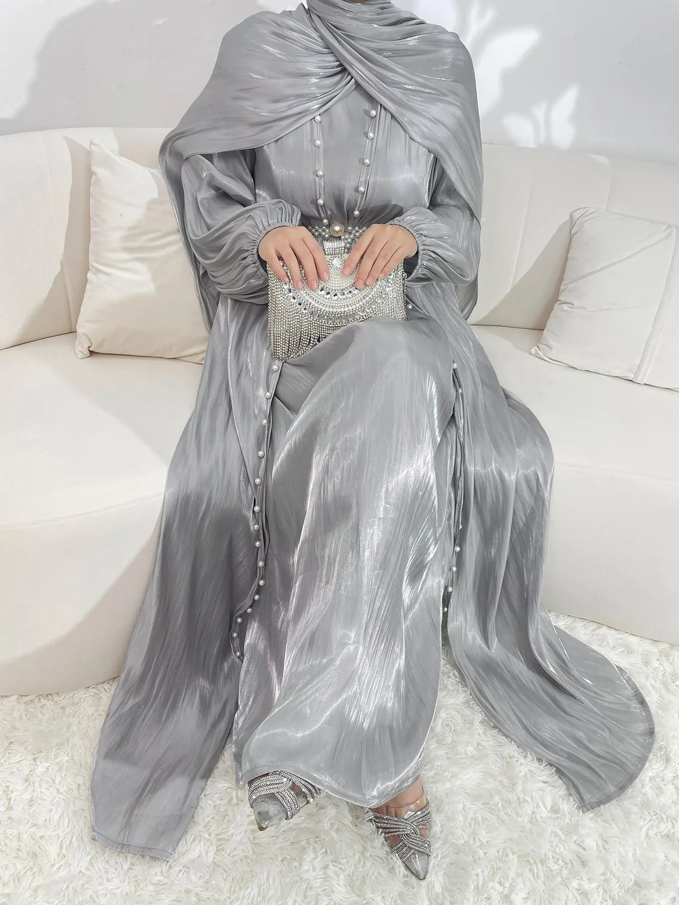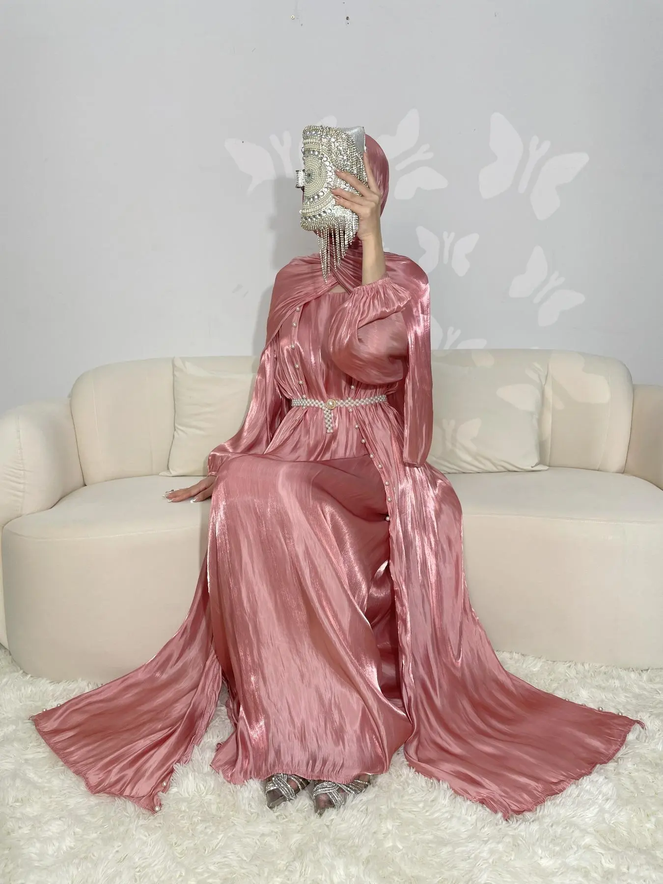 Absolutely stunning! I’m so in love with this dress comes with two belts a dress and cover with pearl beads and a pearl belt ! And scarf to match 🥰😍💕