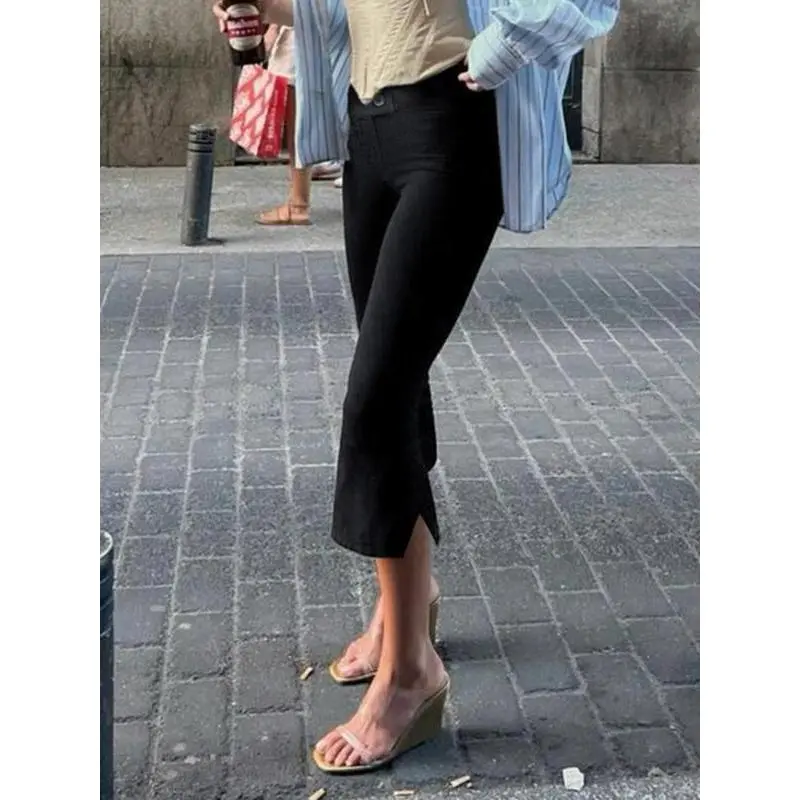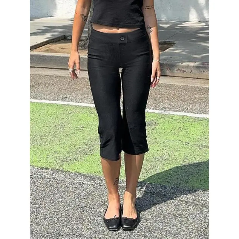 Women's Solid Button Capri Pants, Casual Comfy Cropped Trousers for Summer, Fashion Women's Bottoms for Daily Wear