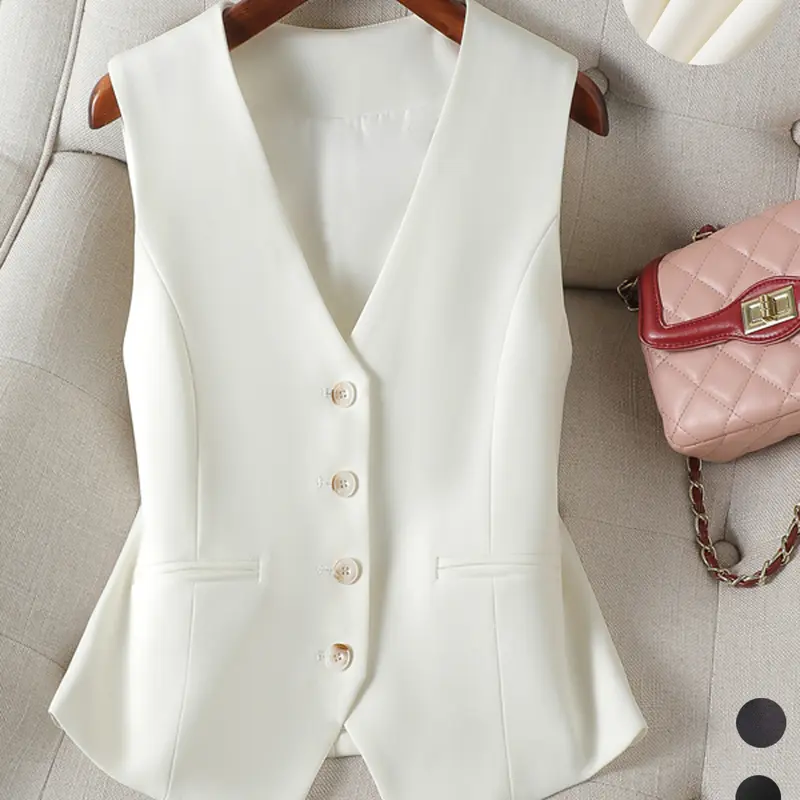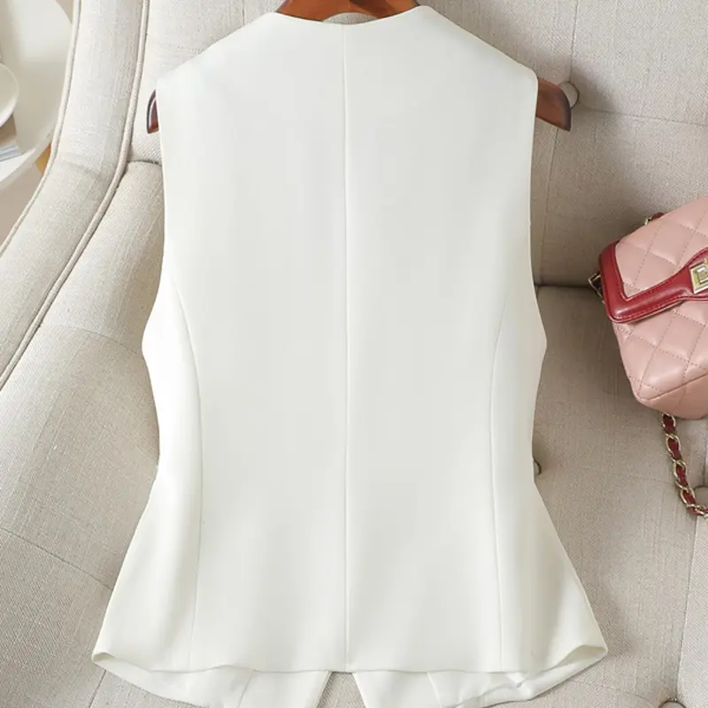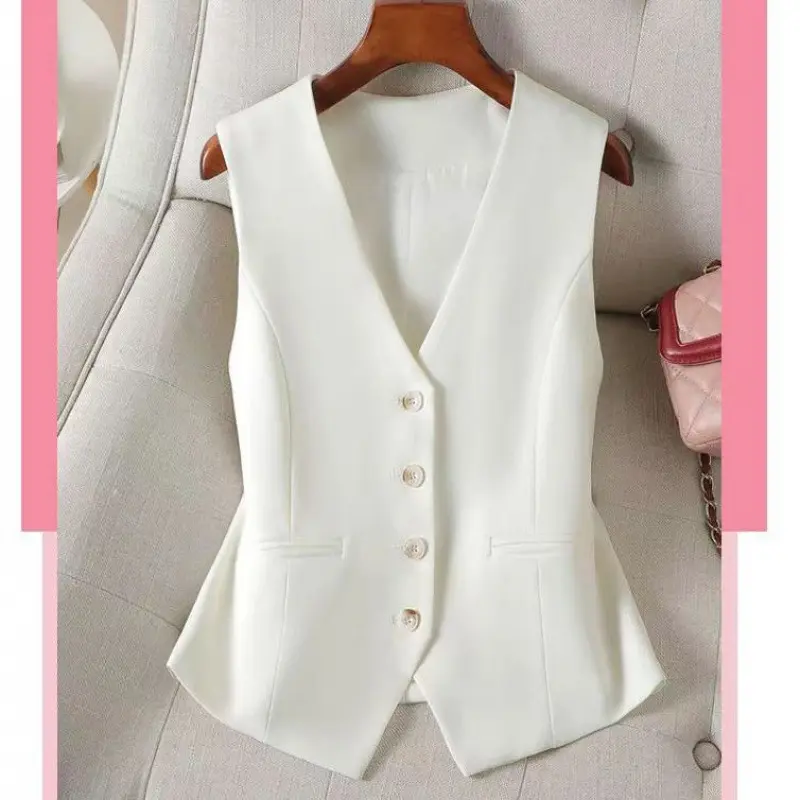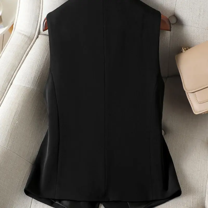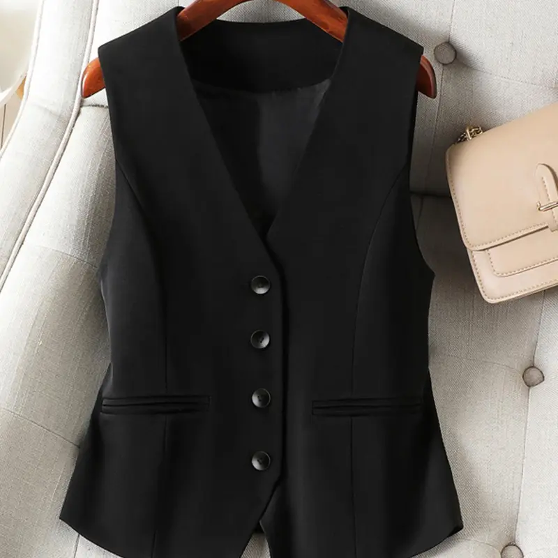 Women's Solid Button Front Vest, Elegant V Neck Sleeveless Waistcoat for Work Office Business, Ladies Spring & Fall Clothes