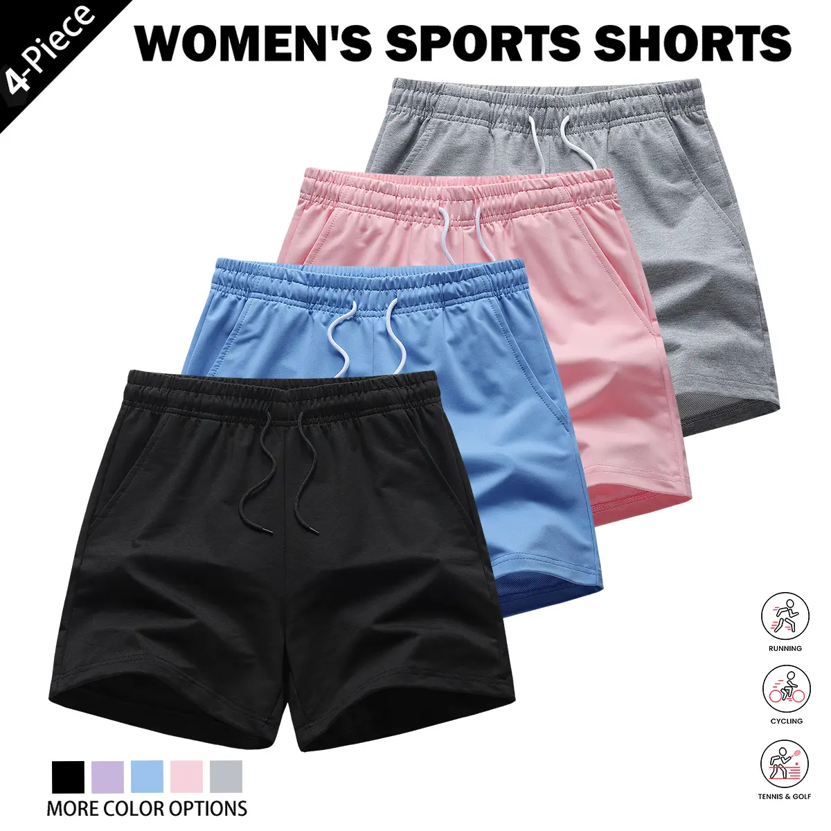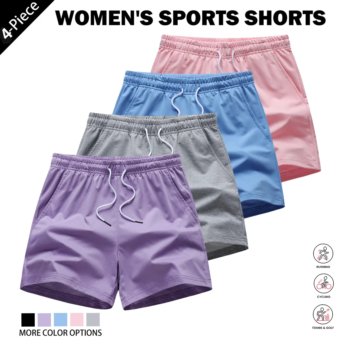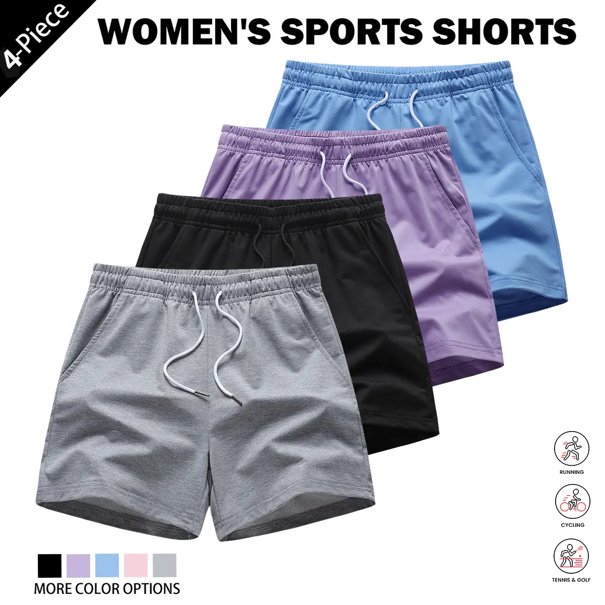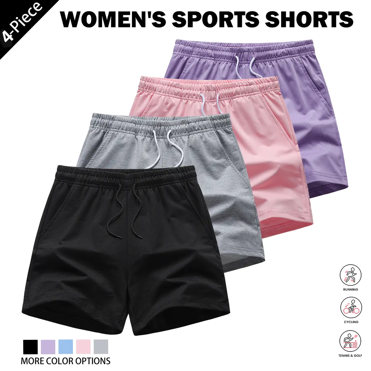4-piece women's solid-color basic casual home pants, available in , soft and comfortable, trendy colors, basic style, with pocket design, waist drawstring, can be used as home wear, women's nightwear, for summer wear, suitable as a gift for women