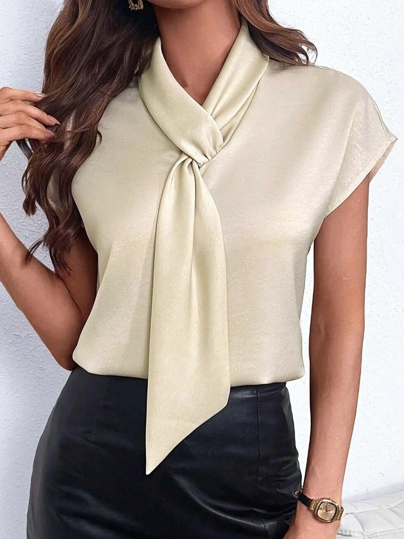 5. Women's Solid Color Blouse, Casual Elegant Short Sleeve Top for Office Work Business, Ladies Summer Clothes