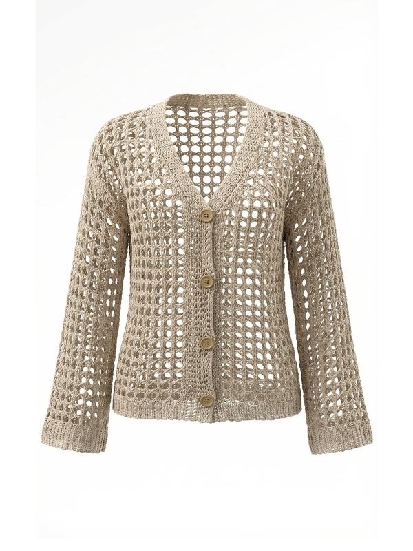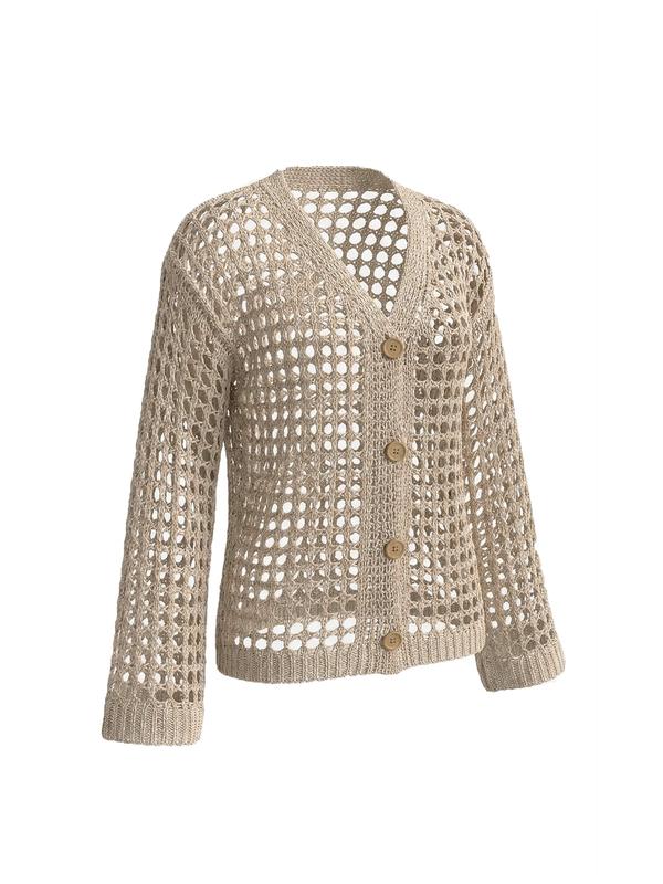 Women's Solid Color Button V-Neck Knit Cardigan Long Sleeve Hollow Out Sweater, Casual Fashion Pullover for Fall & WinterWomen's Solid Color Button V-Neck Knit Cardigan Long Sleeve Hollow Out Sweater, Casual Fashion Pullover for Fall & WinterWomen's Solid Color Button V-Neck Knit Cardigan Long Sleeve Hollow Out Sweater, Casual Fashion Pullover for Fall & WinterWomen's Solid Color Button V-Neck Knit Cardigan Long Sleeve Hollow Out Sweater, Casual Fashion Pullover for Fall & WinterWomen's Solid Color Button V-Neck Knit Cardigan Long Sleeve Hollow Out Sweater, Casual Fashion Pullover for Fall & Winter