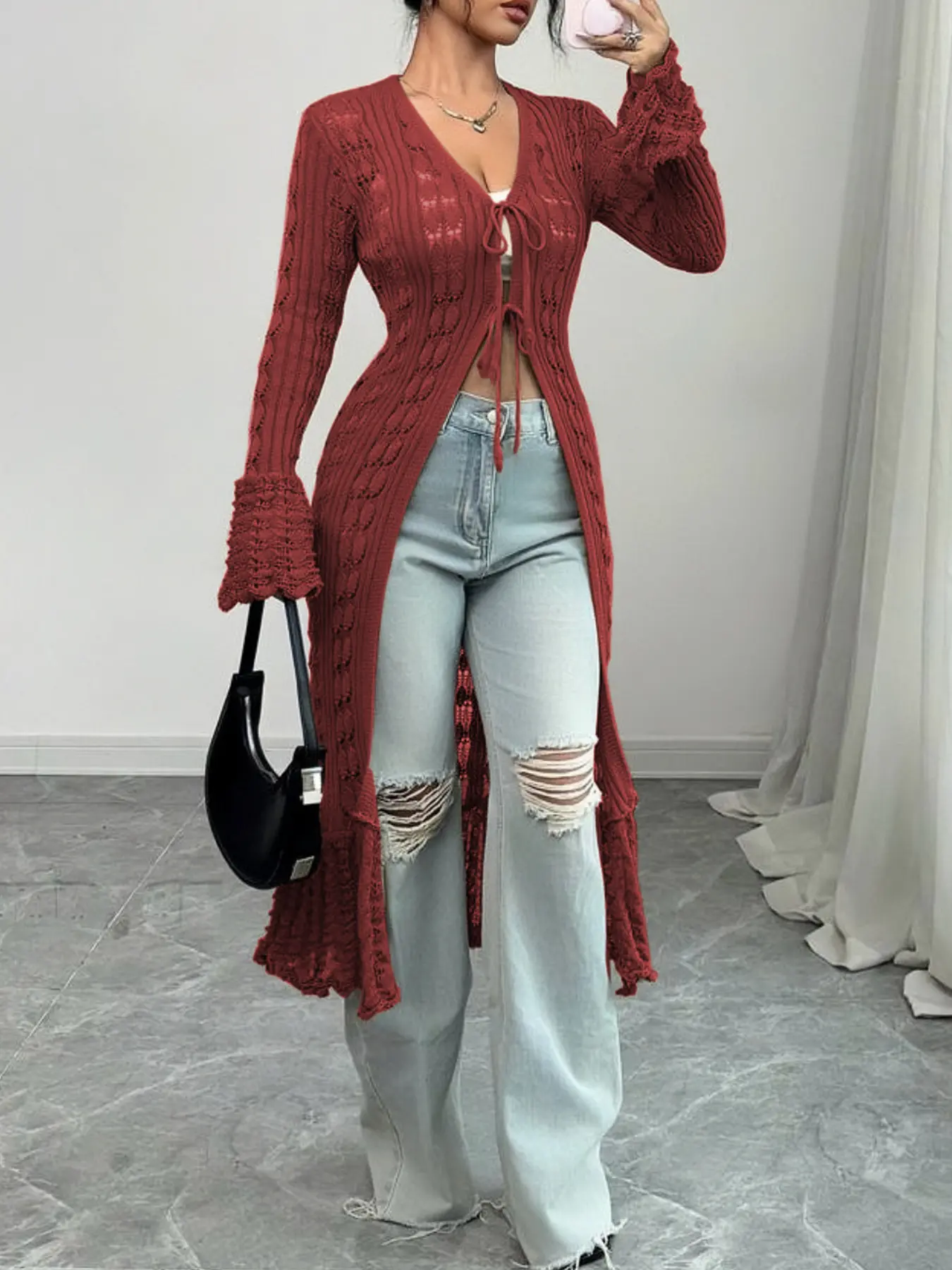 5. Women's Solid Color Long Sleeve Knitting Cardigan, Elegant Fashion Casual Fitted Tie Front Cardigan, Women Knitwear for Daily Outdoor Wear