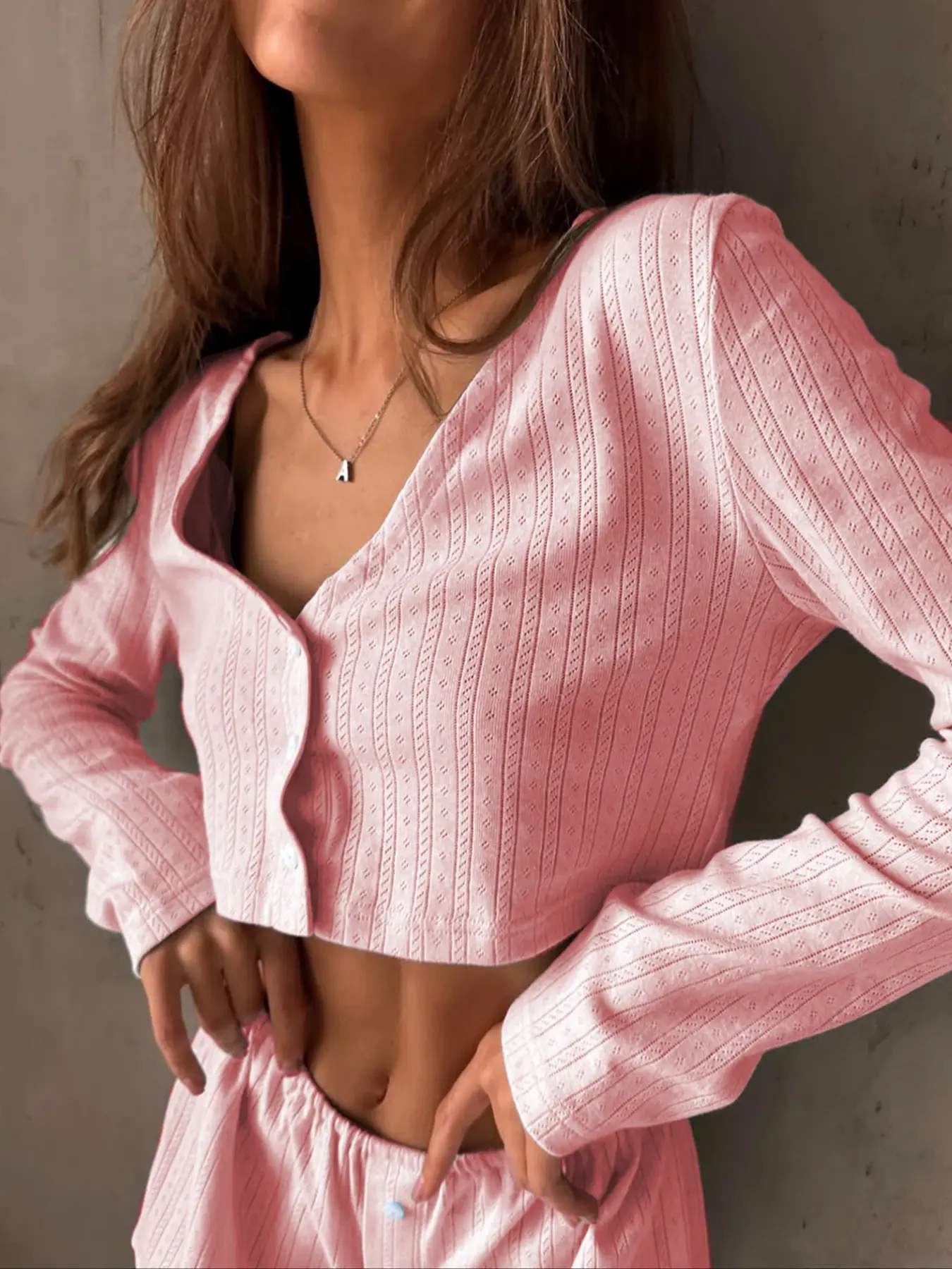 Women's Solid Color Open Front Crop Top & Shorts Loungewear Two-piece Set, Casual Comfy Long Sleeve Top & Shorts PJ Set, Ladies Sleepwear for Summer, Pajama #womenspajamass #braandunderwearset #victoriassecretchristmaspajamas #perfectloungeset #womenspantssuit #allseasonsleepwear #winterpajamasset #prettygardensweatsuit #softnightwear #lingerienightgown