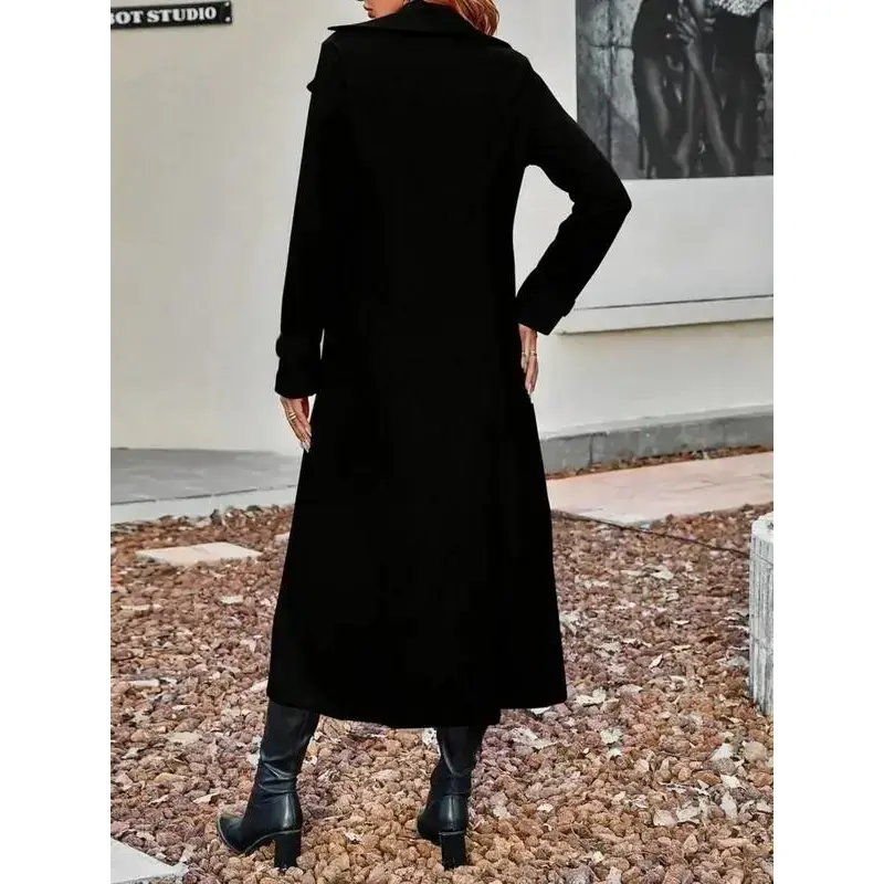 Women's solid color double breasted wool jacket, elegant long jacket for autumn and winter