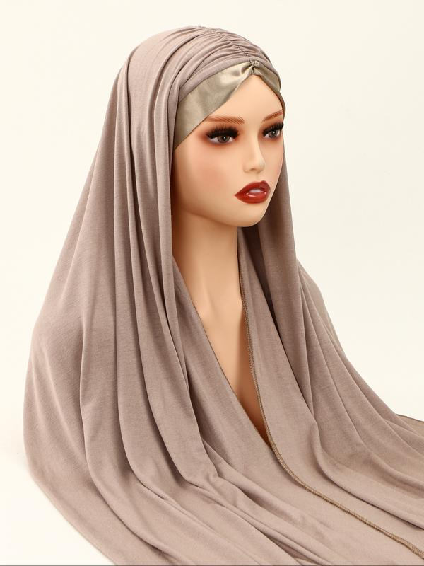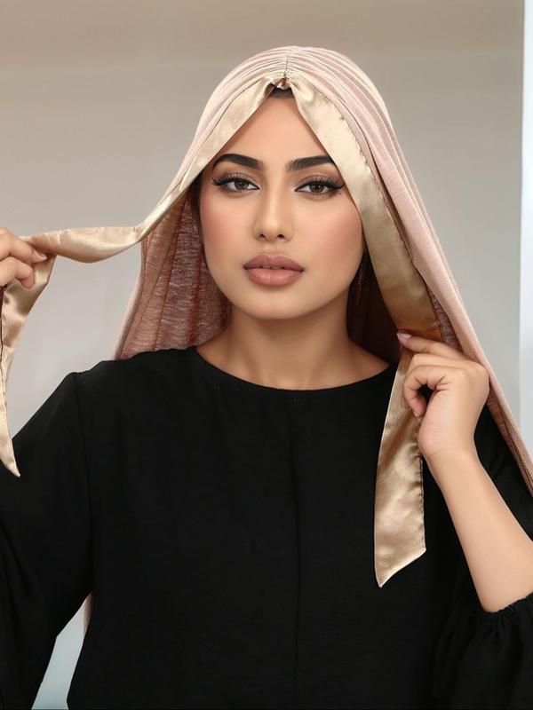 Women's Fashion Solid Color Turban Hijab Scarf, Soft Islamic Head Wrap, Multifunctional Sun Protection Shawl, Versatile Beach Cover-Up