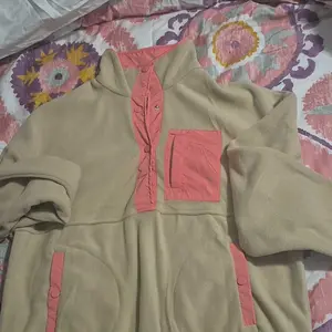 Very oversized but very on trend. Not too heavy , so can wear as part of an outfit. Fine faux suede material. I got light khaki and the brown color. Definitely size down.