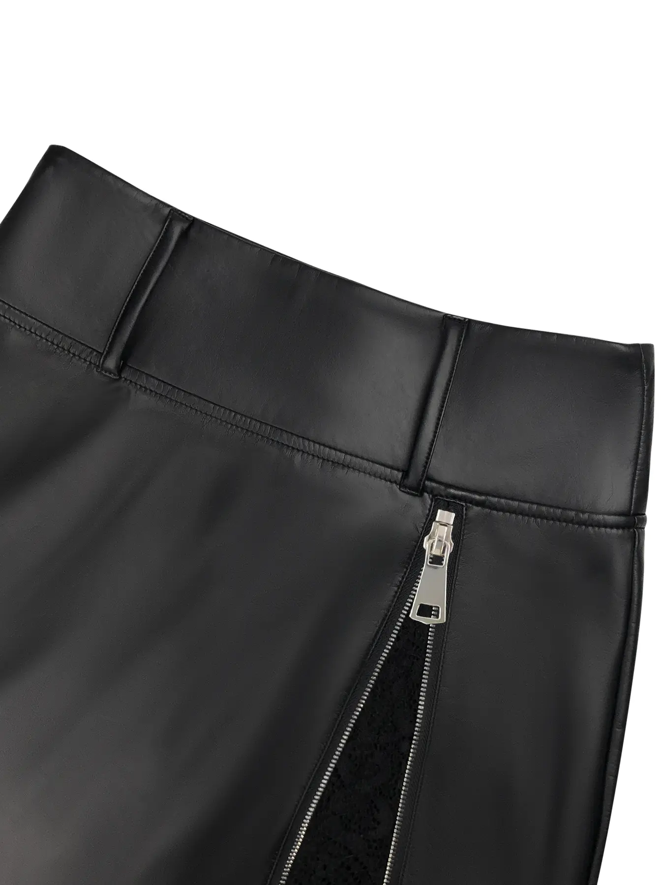 Aswulk Women's Solid Color Lace Patchwork PU Skirt