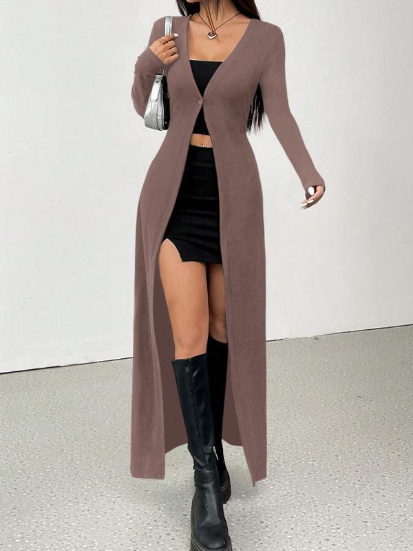 Women's Solid Color Long Casual Knit Cardigan, Single Button Fitted Sweater for All Seasons, Plain Pattern, Moderate Fabric Thickness #TikTokShopBlackFriday #TikTokShopCyberMonday #spotlightfinds #ootd/  #clothing