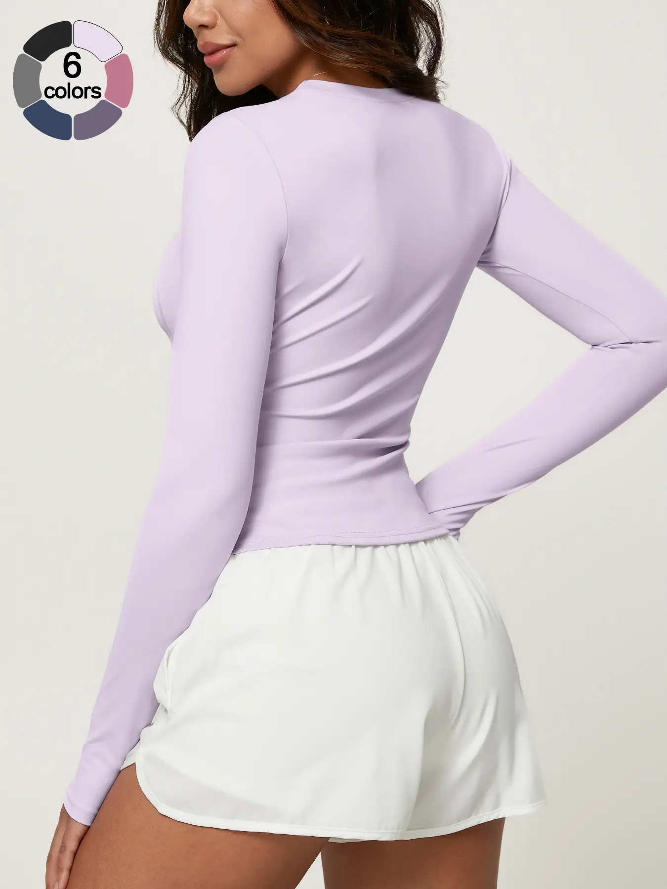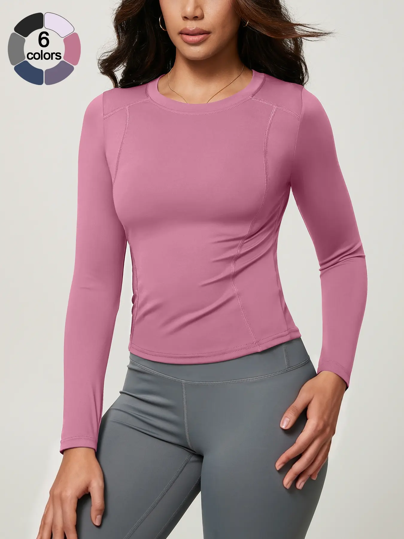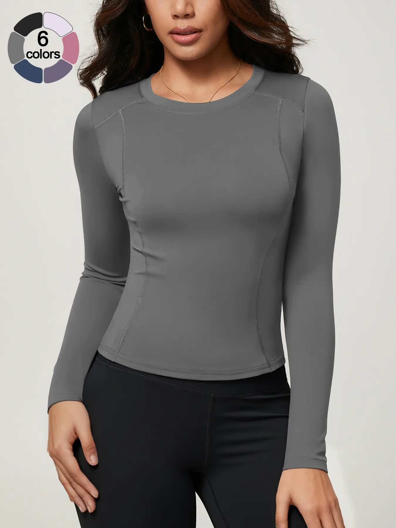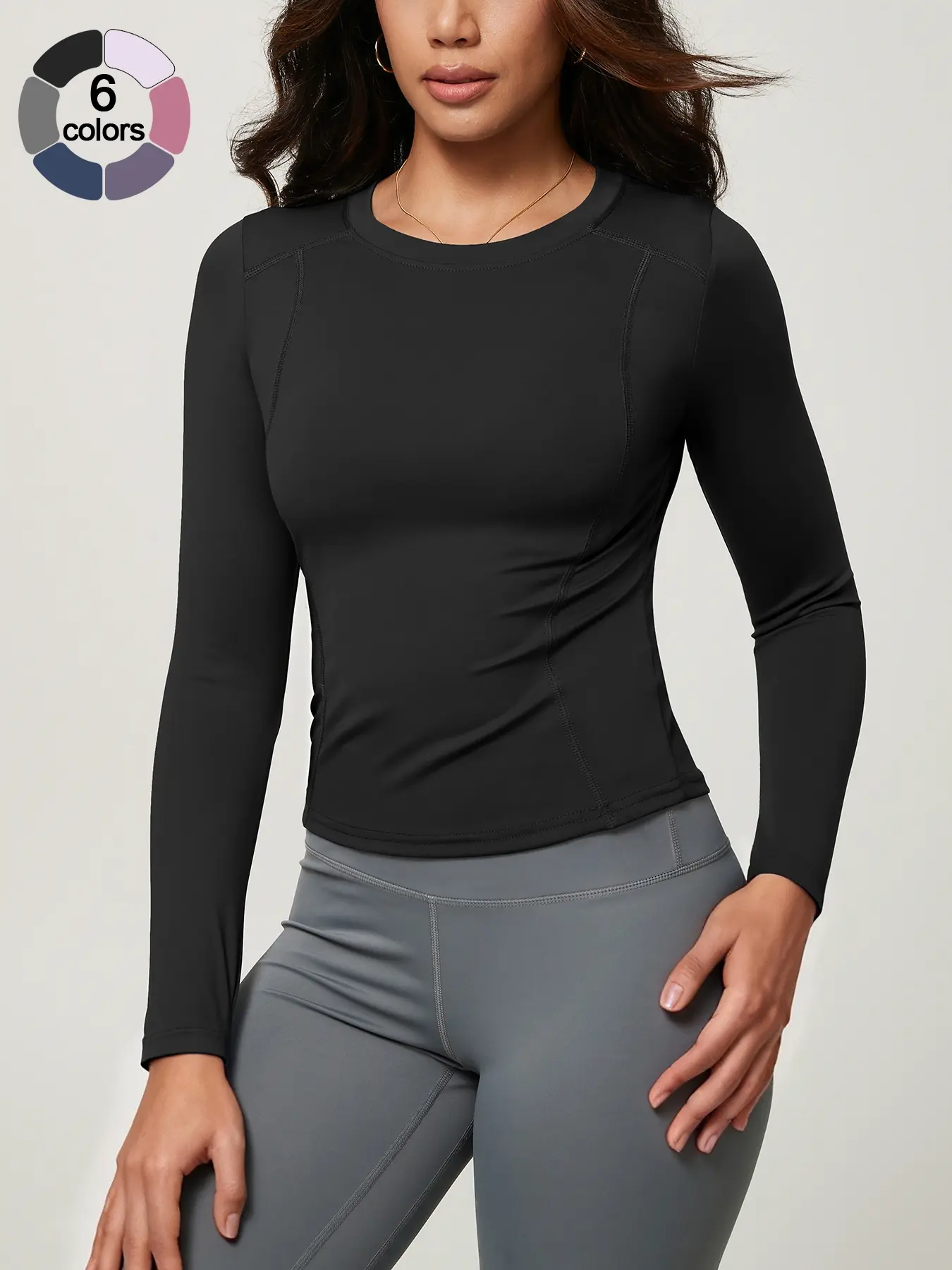 Women's Solid Color Long Sleeve Sport Top, Round Neck Thumb Hole Design, Comfortable Casual Yoga Gym Running Cycling Golf Tennis Wear, Fitness Running Tops