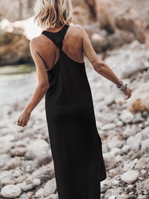 Women's Solid Color Lounge Dress, Casual Basic Comfy Sleeveless Dress for Summer, Ladies Sleepwear for Indoor Wear #silkdress #blackgirloutfitideas #sleepwearset #loungewearbra #loungedress #lacebodysuit #gaploungewear #loungedresses #womensloungewear #dressshop