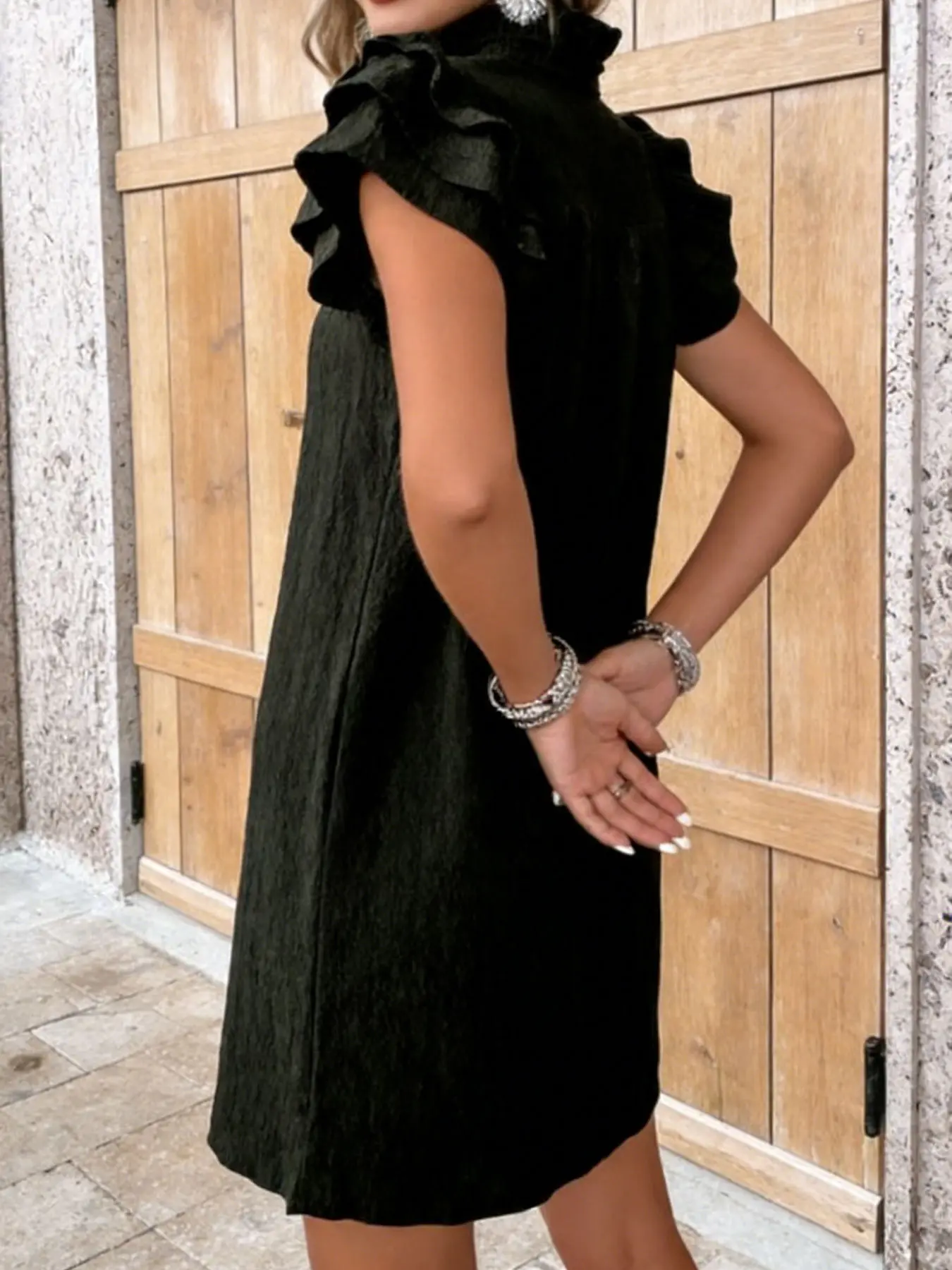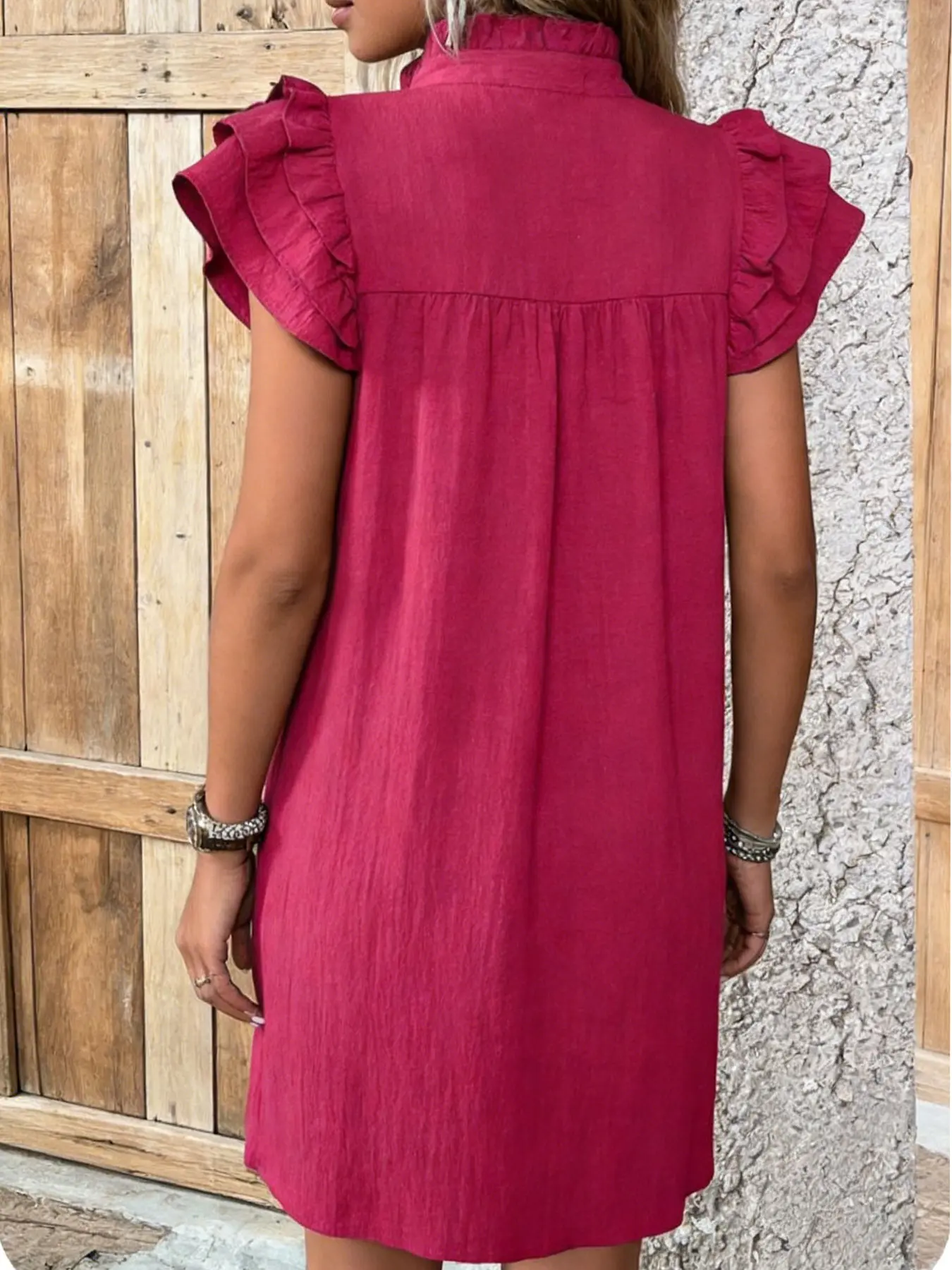 5. A women's solid color multi-layer ruffled sleeve V-neck pullover dress, suitable for summer, daily casual wear, vacations, dates, gatherings, and othe Womenswear