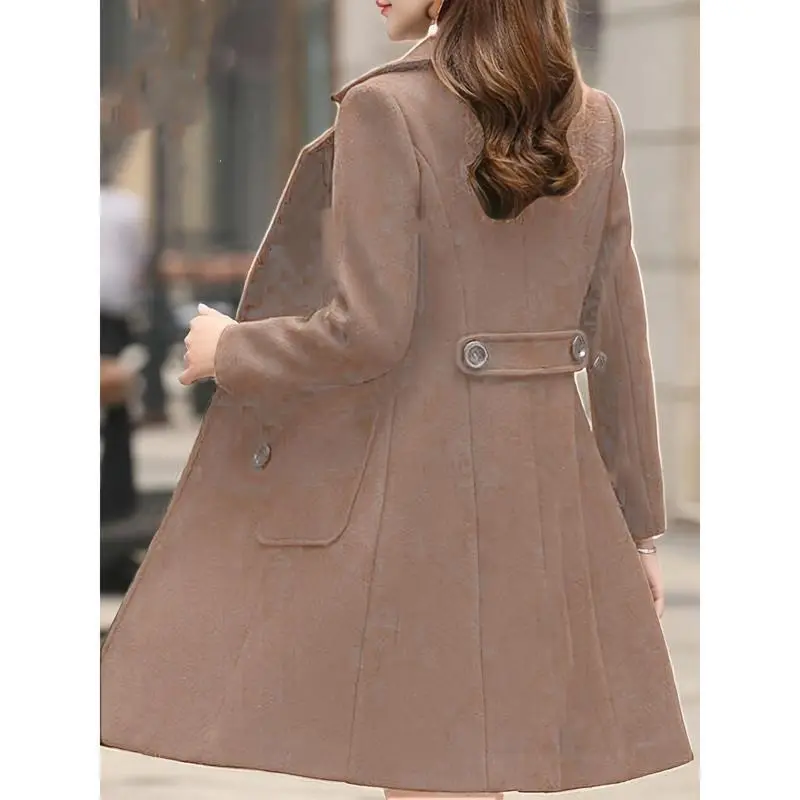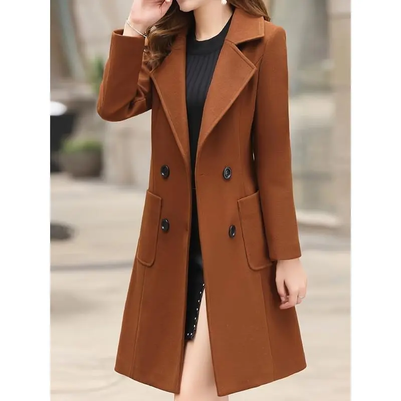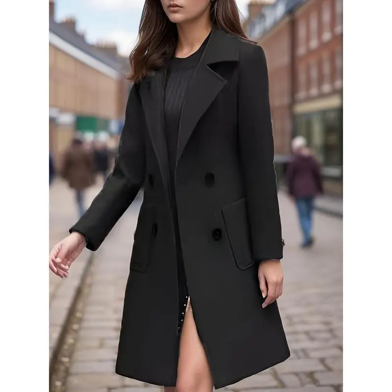 Women's Fashion Solid Color Open-Front Jacket-Turn-down Collar, Double Breasted, Long Sleeve-Perfect for Winter and Autumn Fashion Cotton Fabric Coats Polyester(Raincoats)