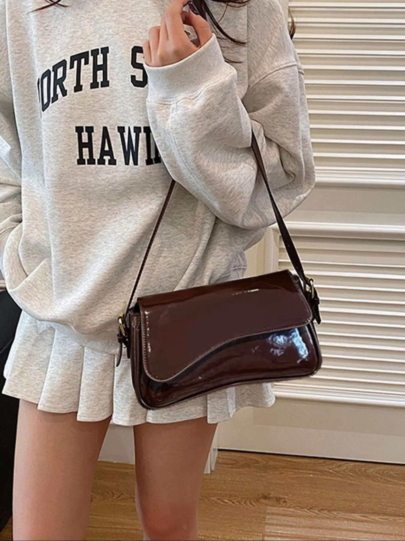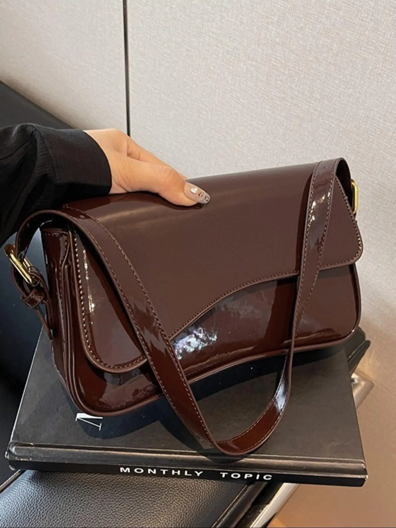 Women's Solid Color Shoulder Bag, Fashionable PU Leather Crossbody Bag for Work & Business, Casual Trendy Versatile High-quality Daily Commuting Bag, Leather Shoulder Bags