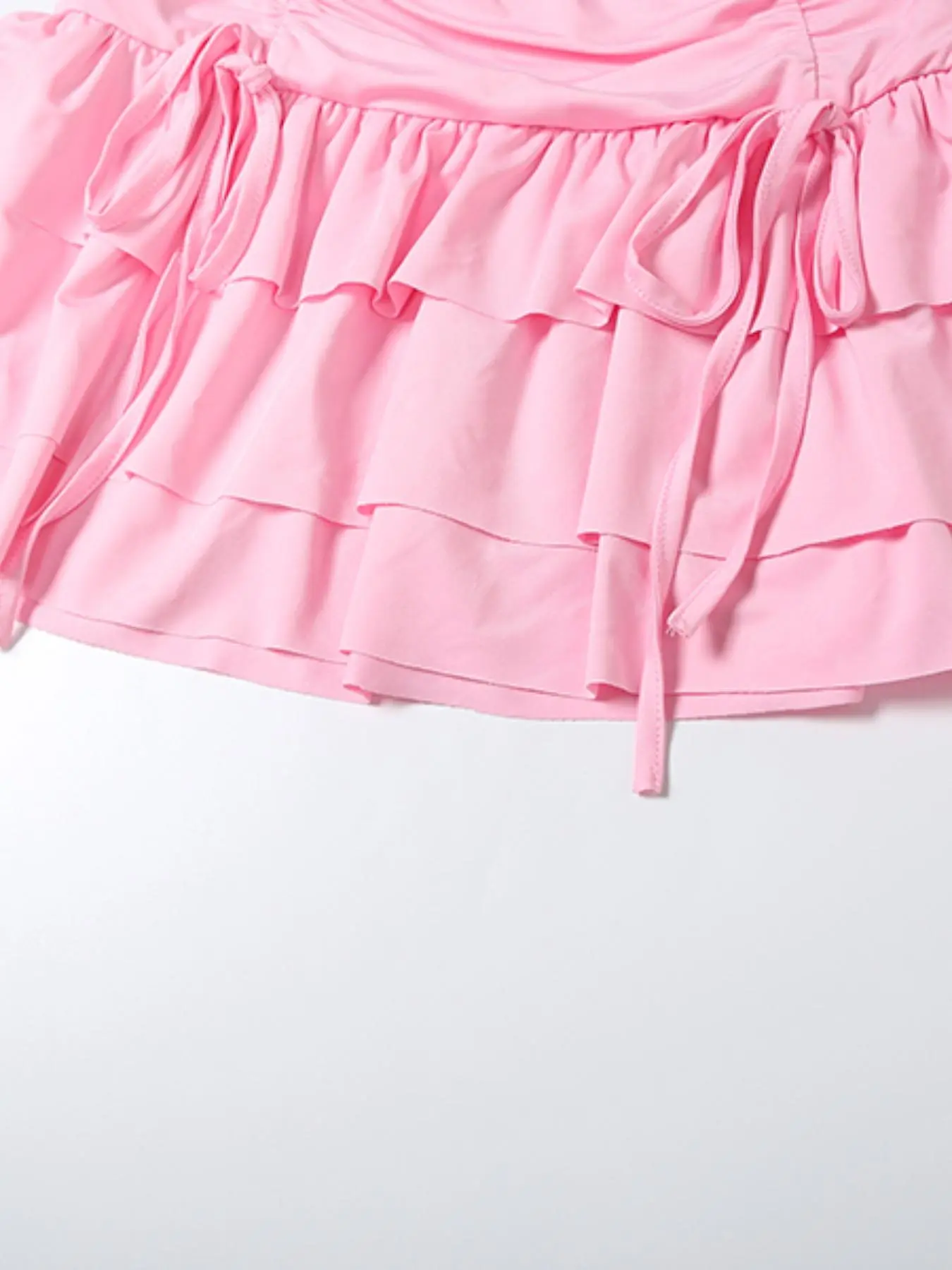 5. Women's Solid Color Tank Top & Ruffle Trim Skirt Two-piece Set, Sexy Minimalist Fashion Casual Two Piece Set for Party Club Dating Wear, Women Clothes for Summer, Womenswear
