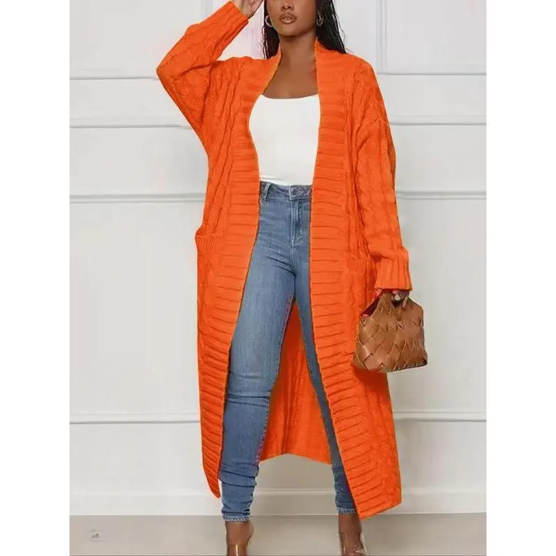 5. Women's Solid Color Textured Drop Shoulder Pocket Longline Cardigan, Casual Open Front Long Sleeve Knitwear for Fall & Winter, Women's Knit Clothing for Daily Wear, Baggy Cardigans for Women, Womenswear, Comfy Fabric Can be used with a raincoat