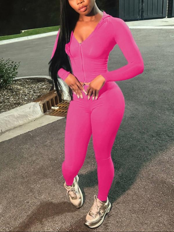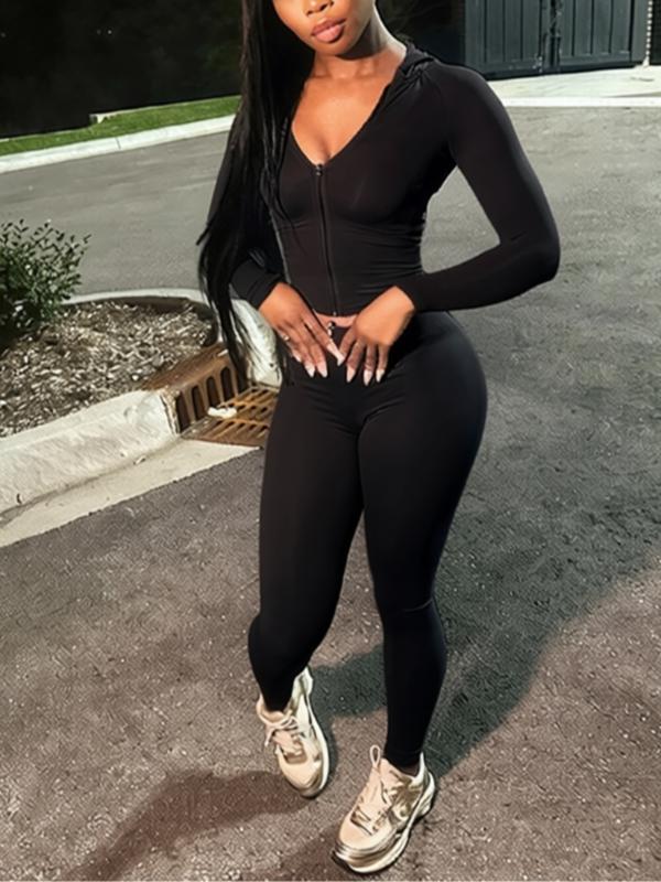 Women's Solid Color Zipper Jacket & Tight Pants Set, Casual Long Sleeve Hooded, All-Season Sportswear, Yoga Wear #zipuphoodie #plussizesweatsuit #prettygardensweatsuit #comfy2piecesets #sportybodysuit #gym2pieceset #womensworkoutclothes #pilatesoutfitideas #2piecesweatsuit #women2pieceset