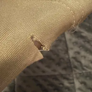 A couple of holes in the sleeve. This portion of the sleeve was tied in a knot.