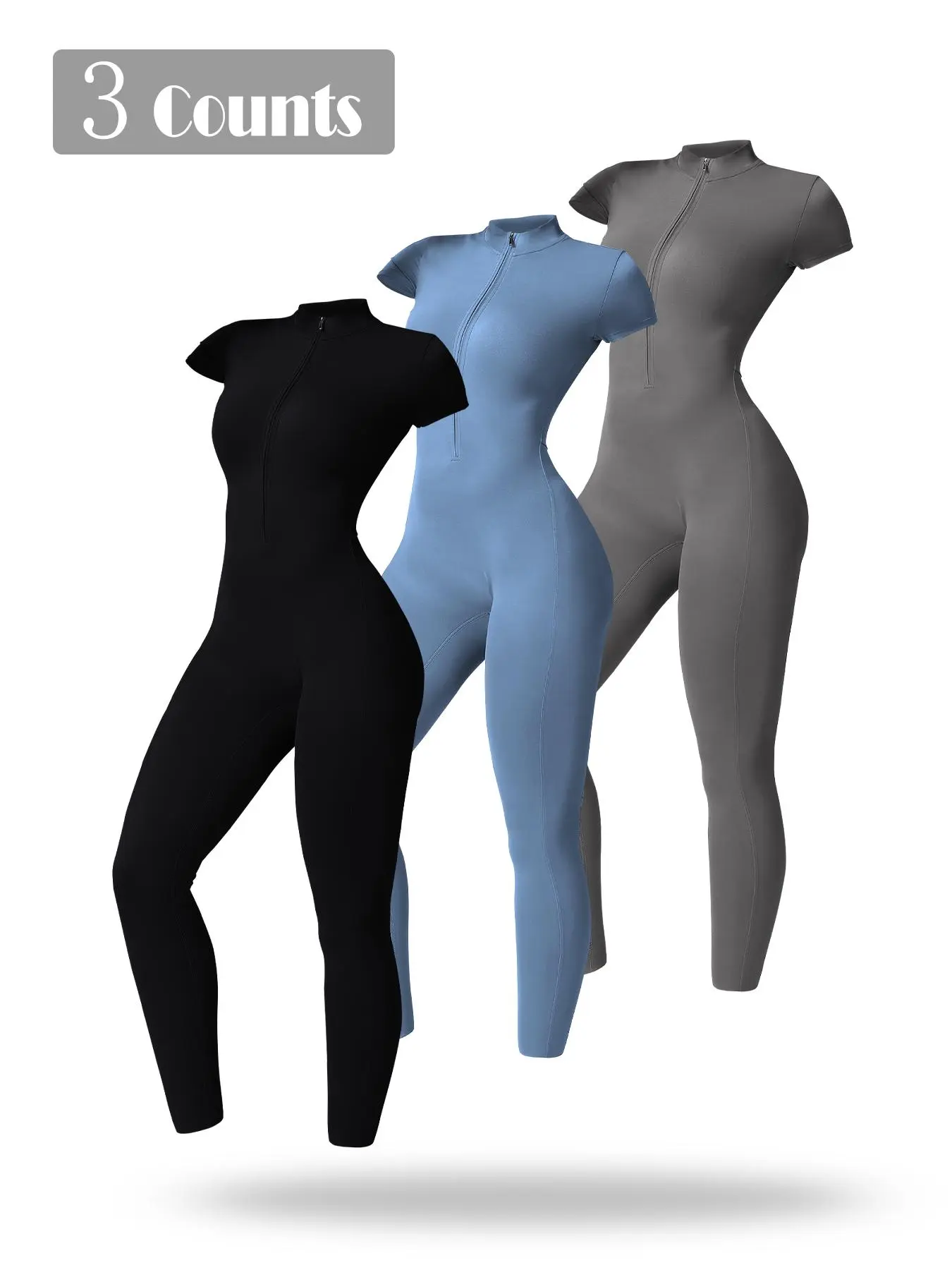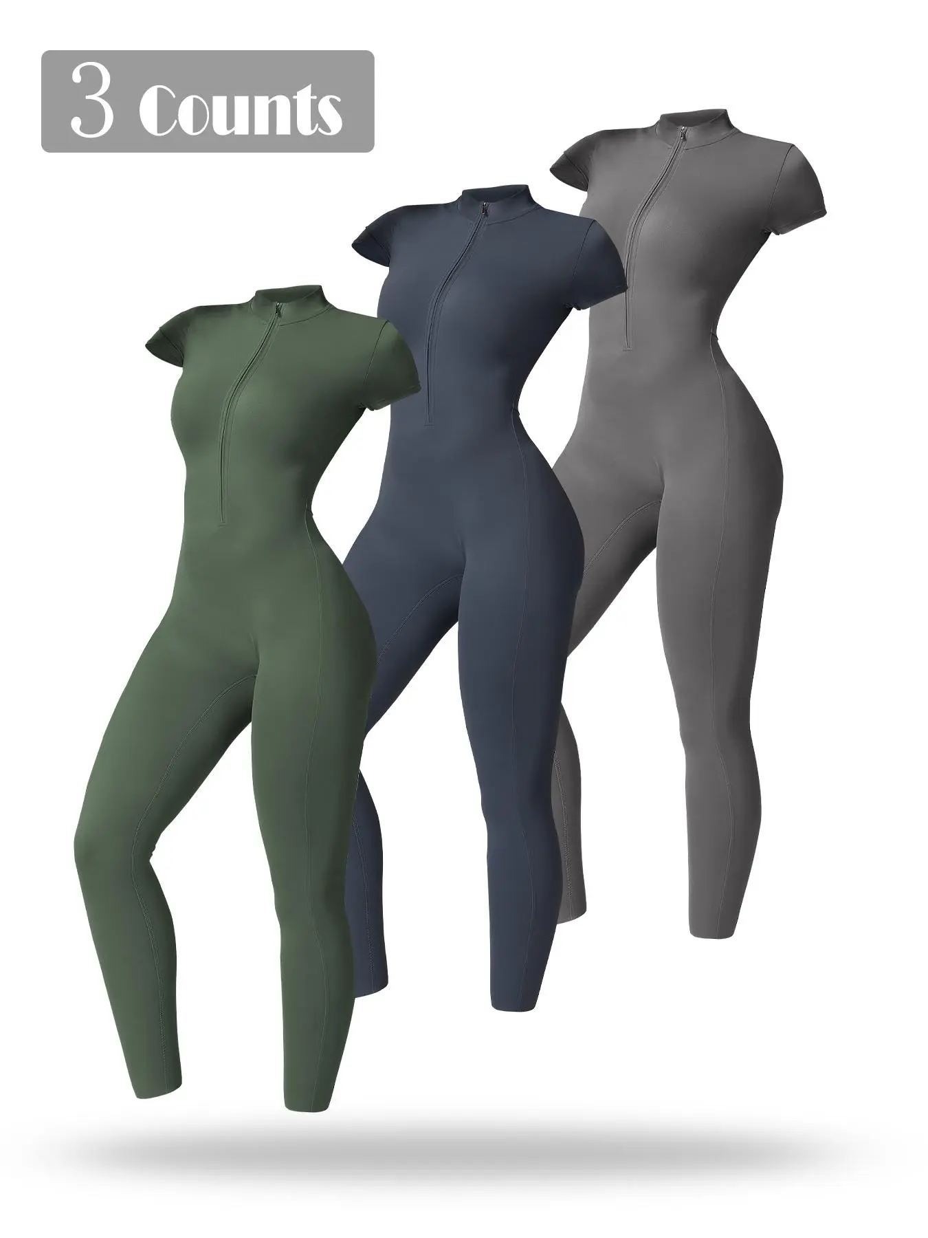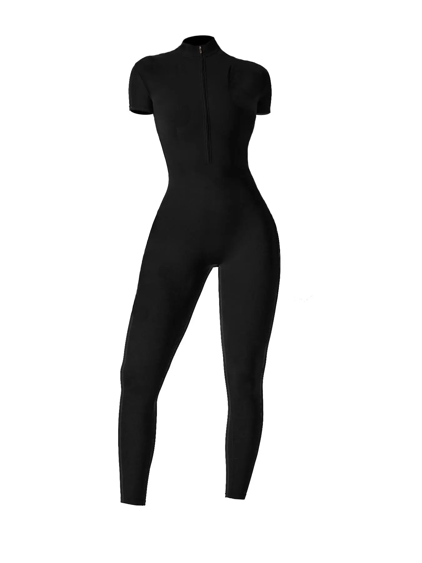 ăSporty Jumpsuită: This half zip jumpsuit features a sporty stand collar, making it ideal for both yoga sessions and workouts at the gym.