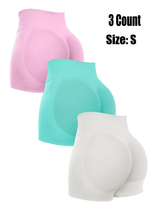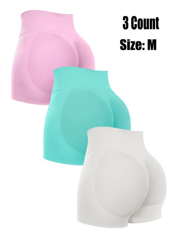Women's Solid High Waist Sports Shorts Set, Ladies Bottoms for Indoor Outdoor Wear, Activewear, Lightweight Compression Sportswear
