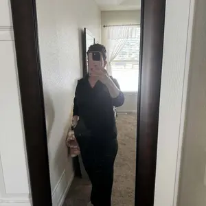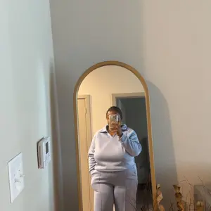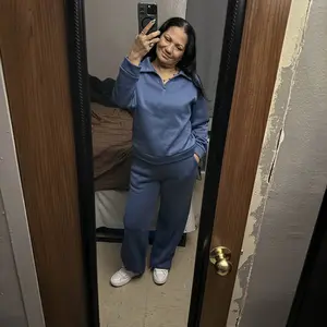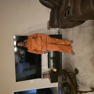 Only thing about this sweat suit the sleeves are short , and the pants are bell bottom look