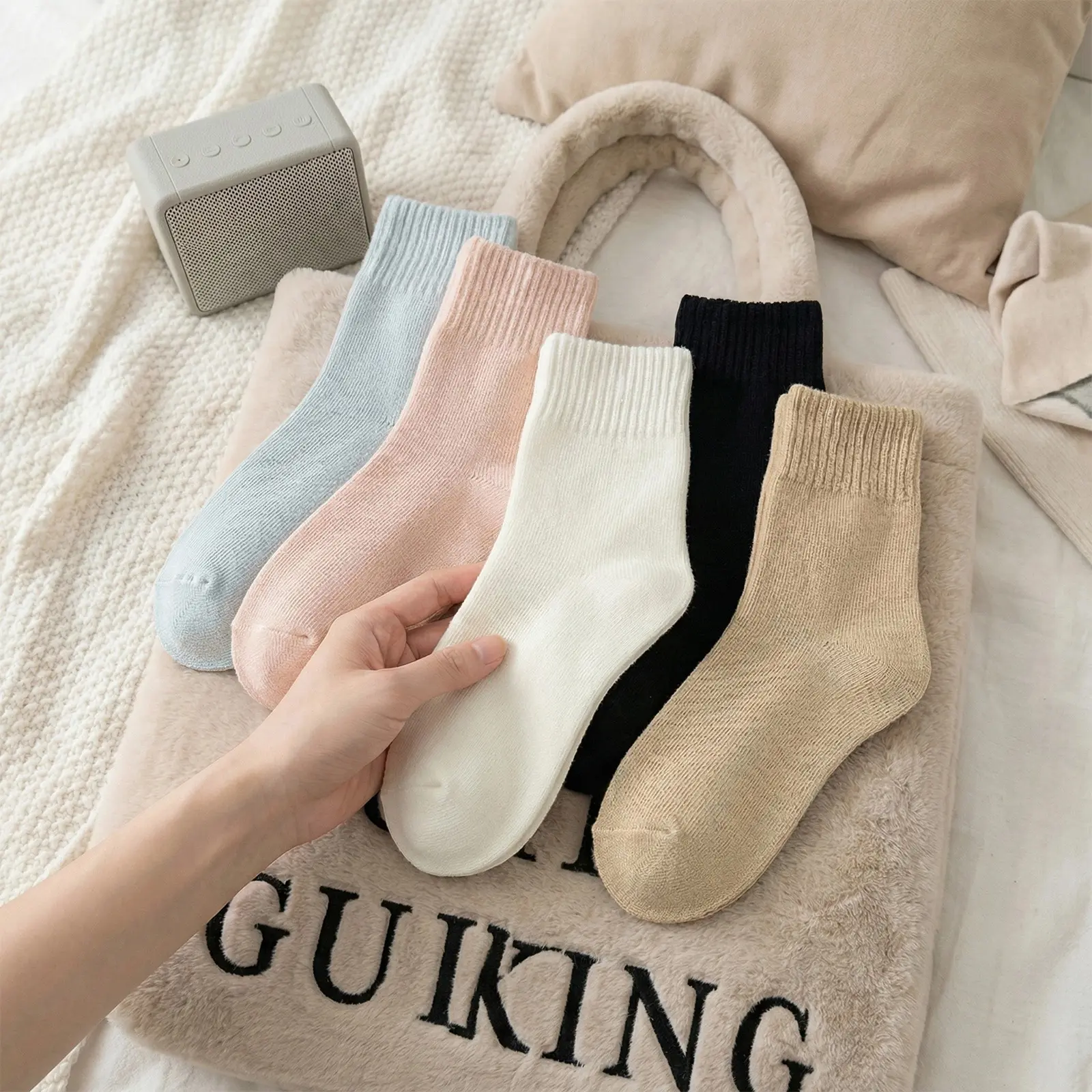 Women's Solid Mid-calf Socks, Casual Soft Comfy Warm Socks for Fall & Winter, Women's Socks for Daily Wear