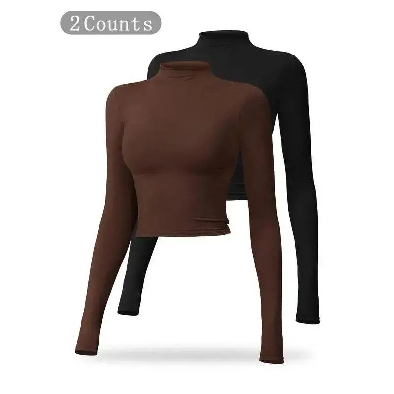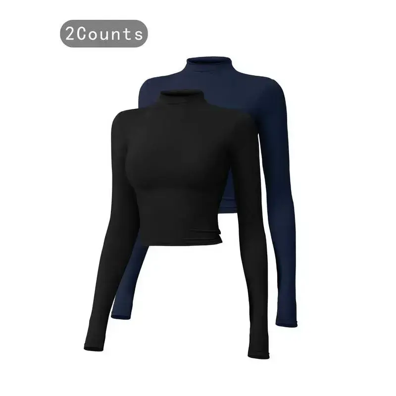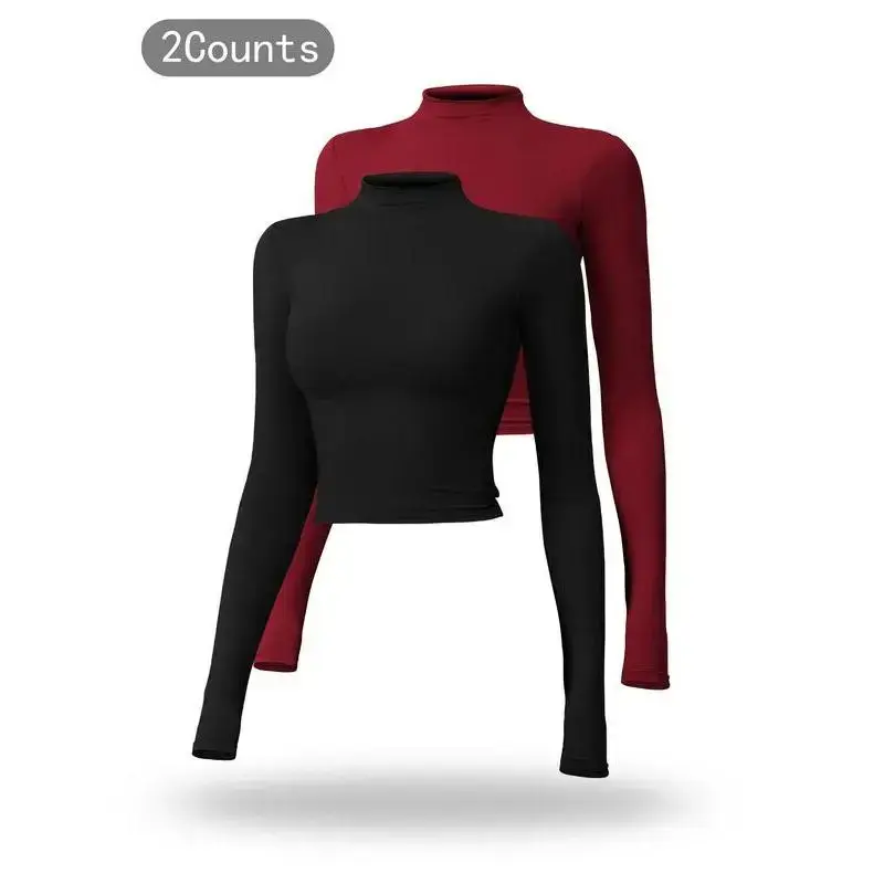 Neckline:Mock NeckSize Type:Normal TypeWeaving Method:Not ApplicableMaterial:Jersey ElastaneSleeve Type:Regular SleeveFit:TightQuantity Per Pack:1/2/3/4 pcsRegion Of Origin:ChinaSeason:Fall&WinterGender:FemaleWashing Instructions:Cold WashComposition:Elastane 22%78% [Moisture-wicking]: Crafted with innovative quick-dry material, effectively dispersing moisture while you engage in-intensity workouts. [Neck Coverage]: Features a collar design that adds extra warmth during fall and winter, enhancing your outdoor experience. [Tight Fit]: This tight-fitting silhouette provides support and enhances your of motion during fitness activities. [Moderate Thickness]: Constructed with a moderate thickness that balances warmth and breathability, suitable layered outfits. [Sporty Aesthetic]: Embrace an athletic look with a sporty aesthetic, seamlessly blending function and a dynamic appearance active days.