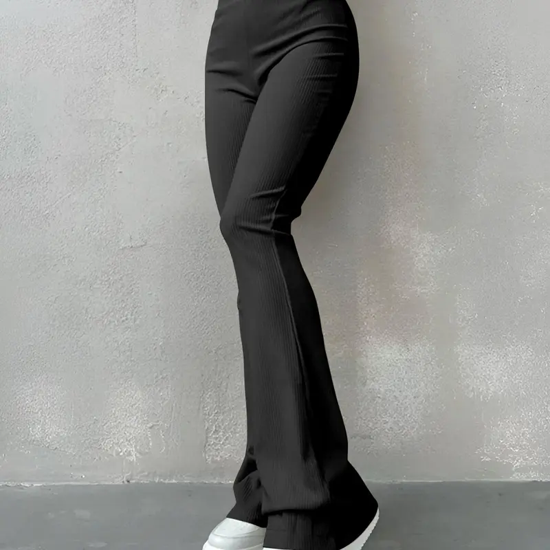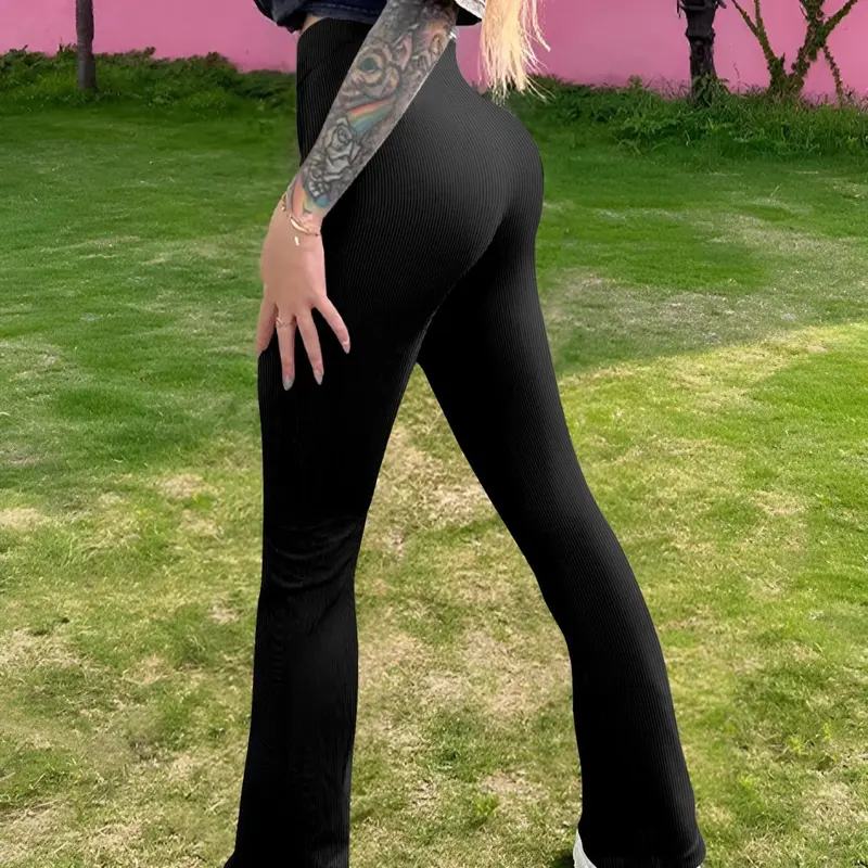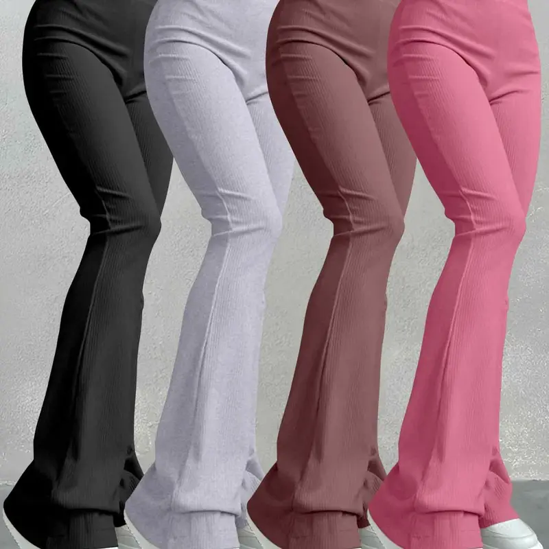 5. Women's Solid Ribbed Flare Leg Leggings, Casual Comfy High Stretch Bell Bottom Trousers for Yoga Gym Workout, Ladies Bottoms for All Seasons