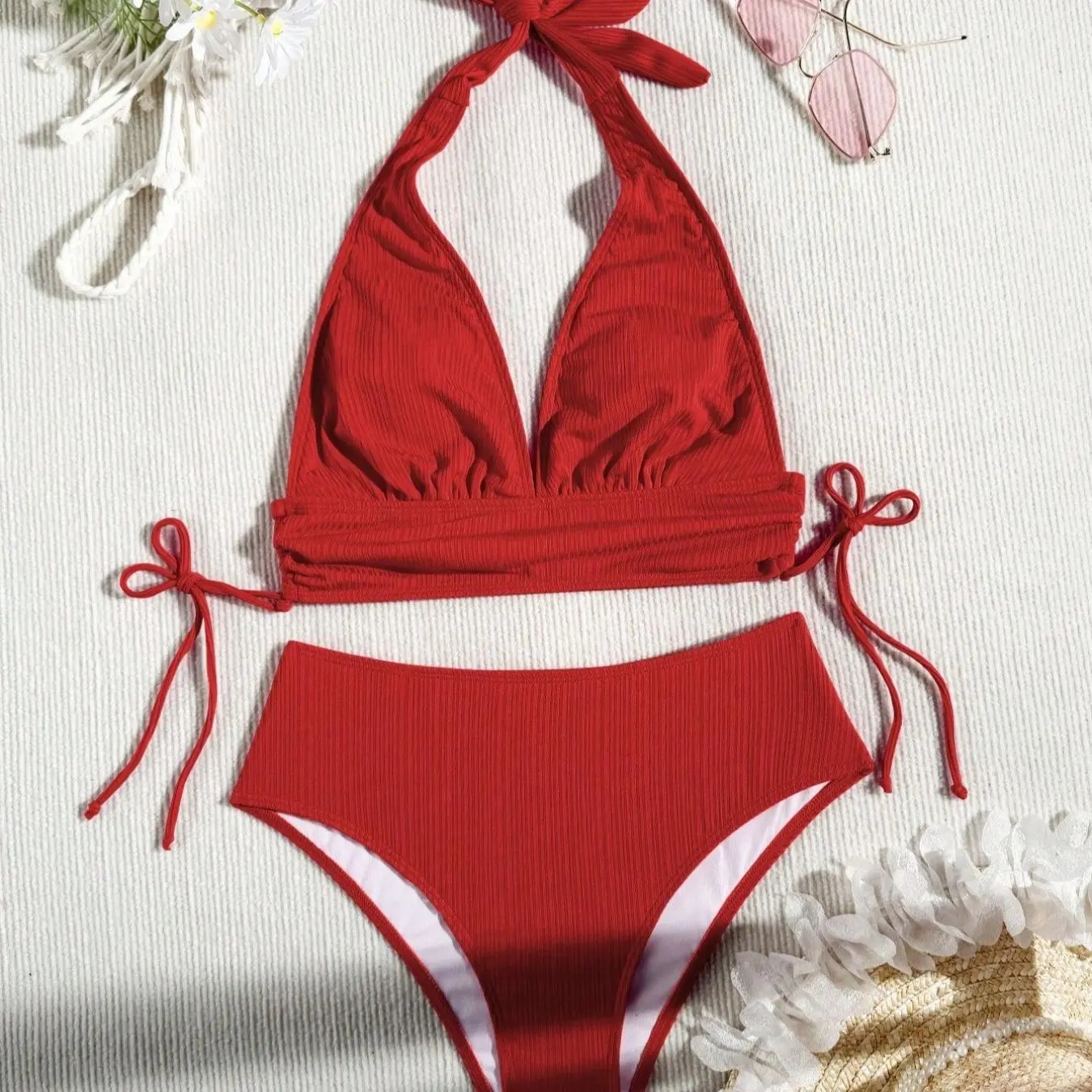 Aleumdr 2 Piece Bikini Set U-Wire Cutout Swimsuit High Waisted Textured 2026 Summer Swimming Clothing Beach Water Sports Tummy Control Swimwear